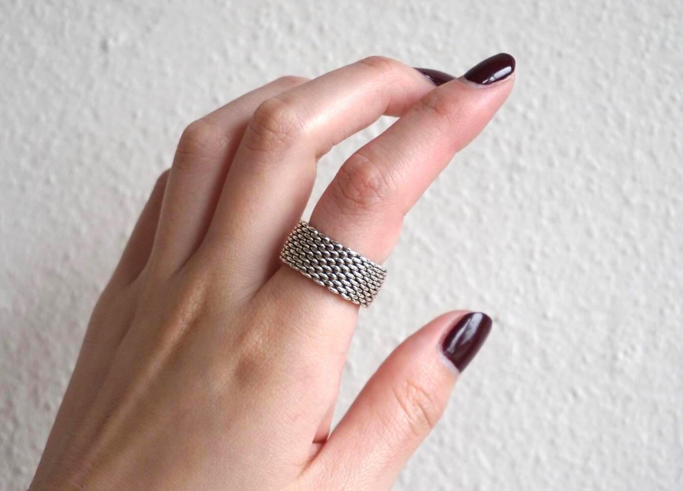 [TIFFANY] SOMERSET メッシュリング ワイド 925シルバー 実寸(13号位) ティファニー サマセット