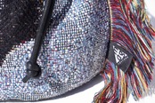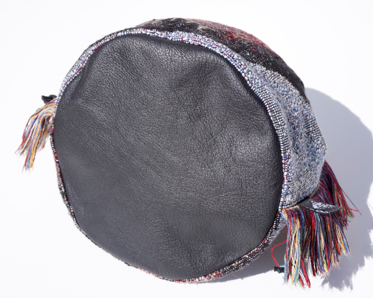 美しいランドスケープ柄に、フリンジとレザーボトムが上品な印象。