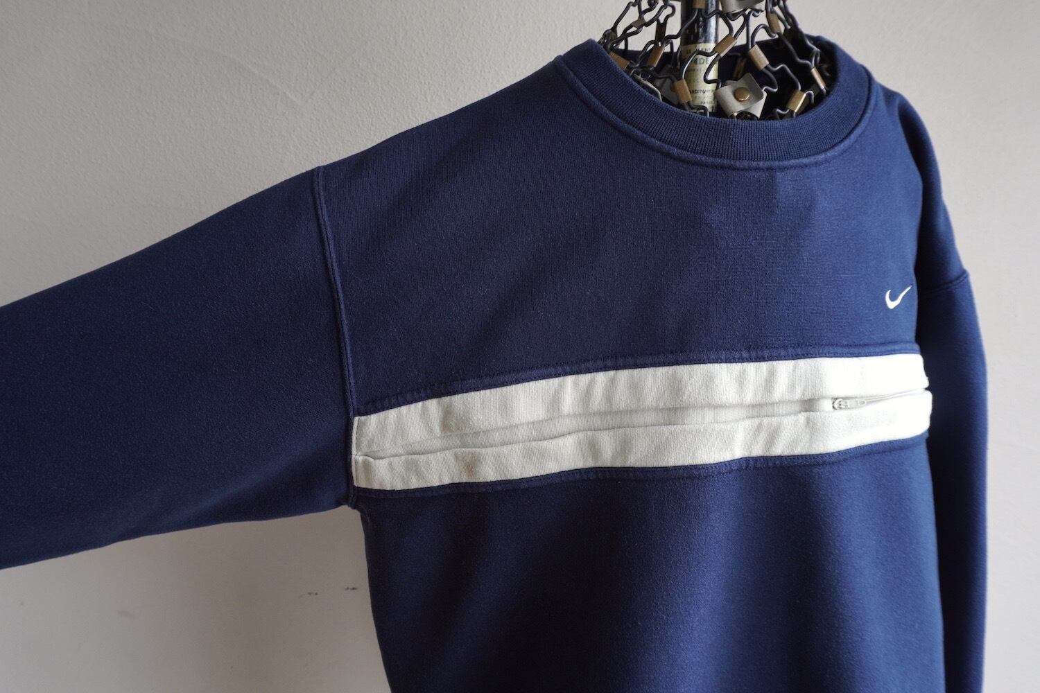 2000's [NIKE] 胸ライン&ジップポケット クルーネックスウェット ネイビー×アイボリー 表記(men's M) ナイキ Y2K ヴィンテージ