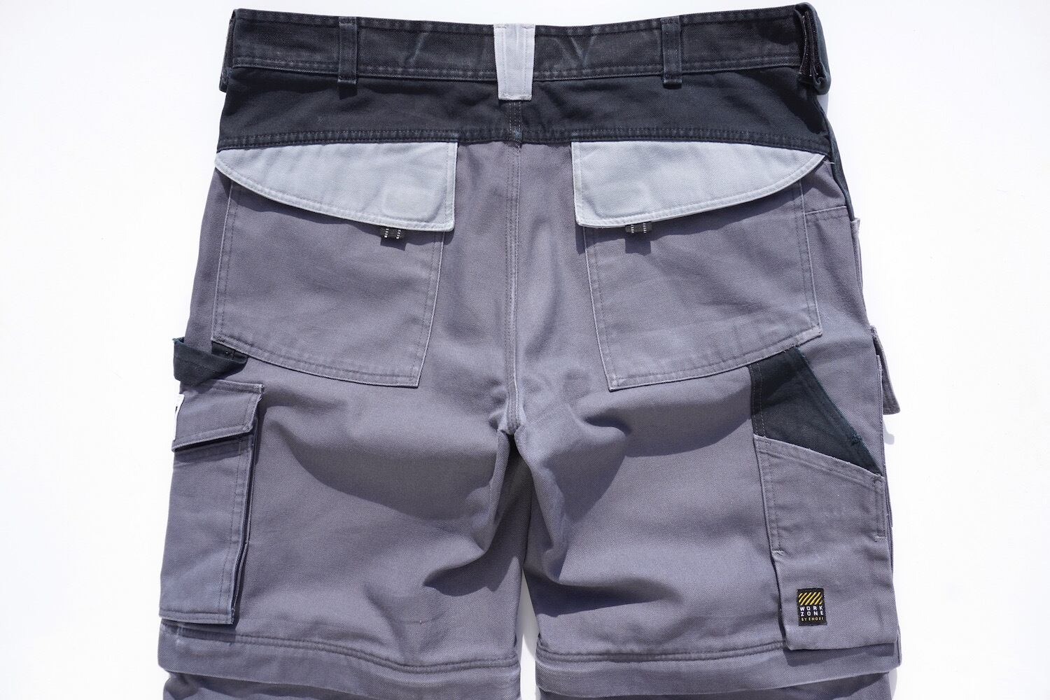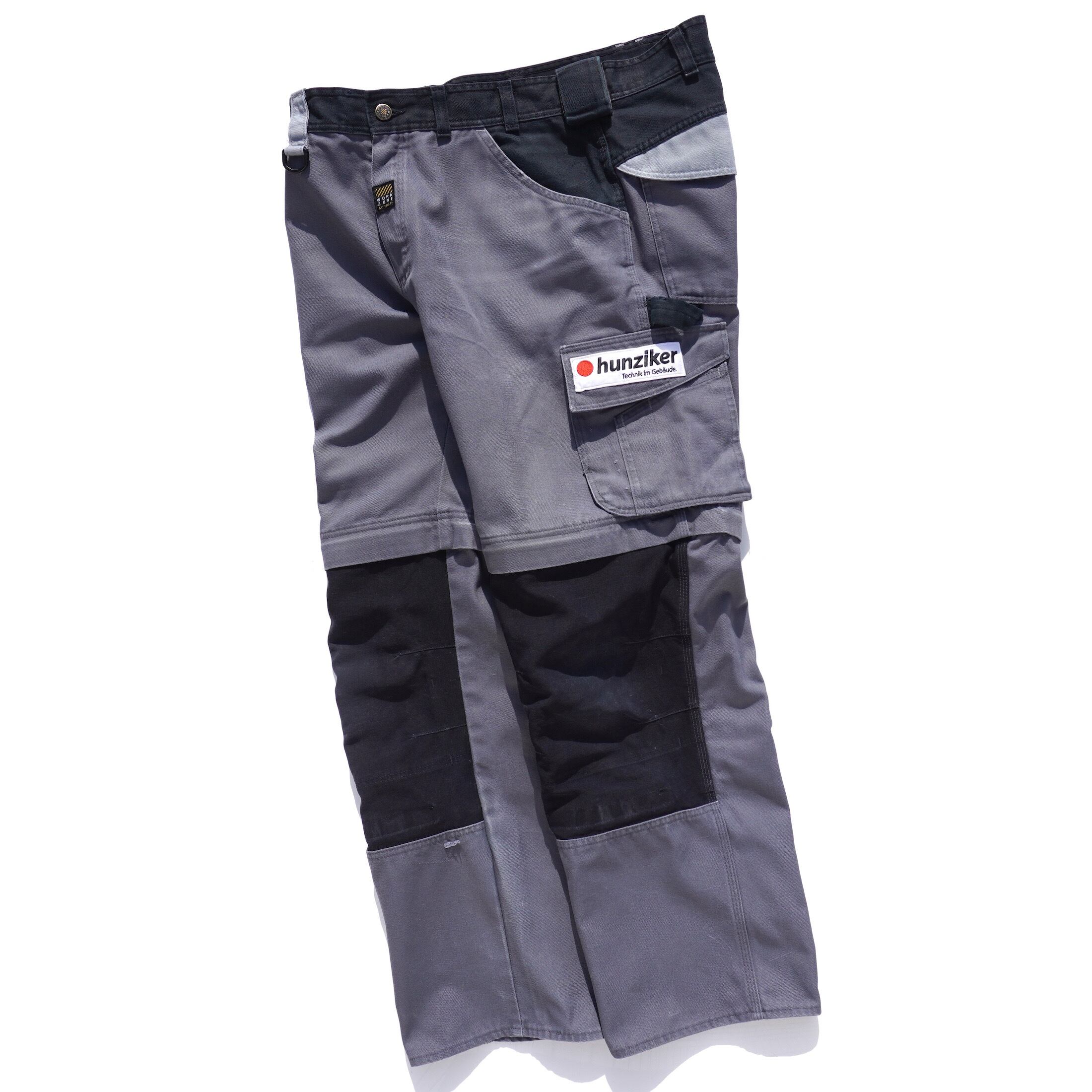 [WORK ZONE BY ENGEL] 2wayコンバーチブル仕様 ダブルニー ユーロワークパンツ グレー×ブラック 実寸(W37程度) バイカラー デンマーク スイス ヨーロッパ