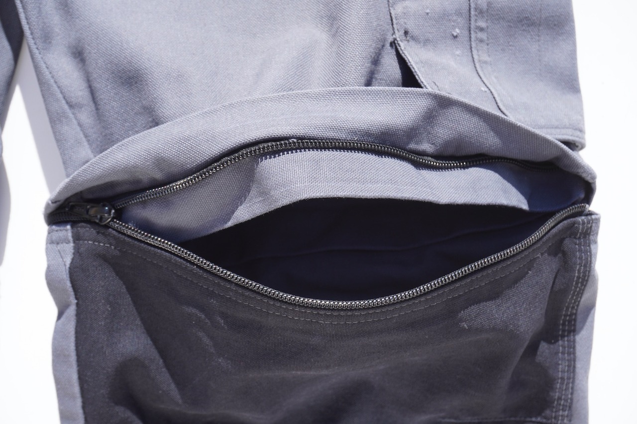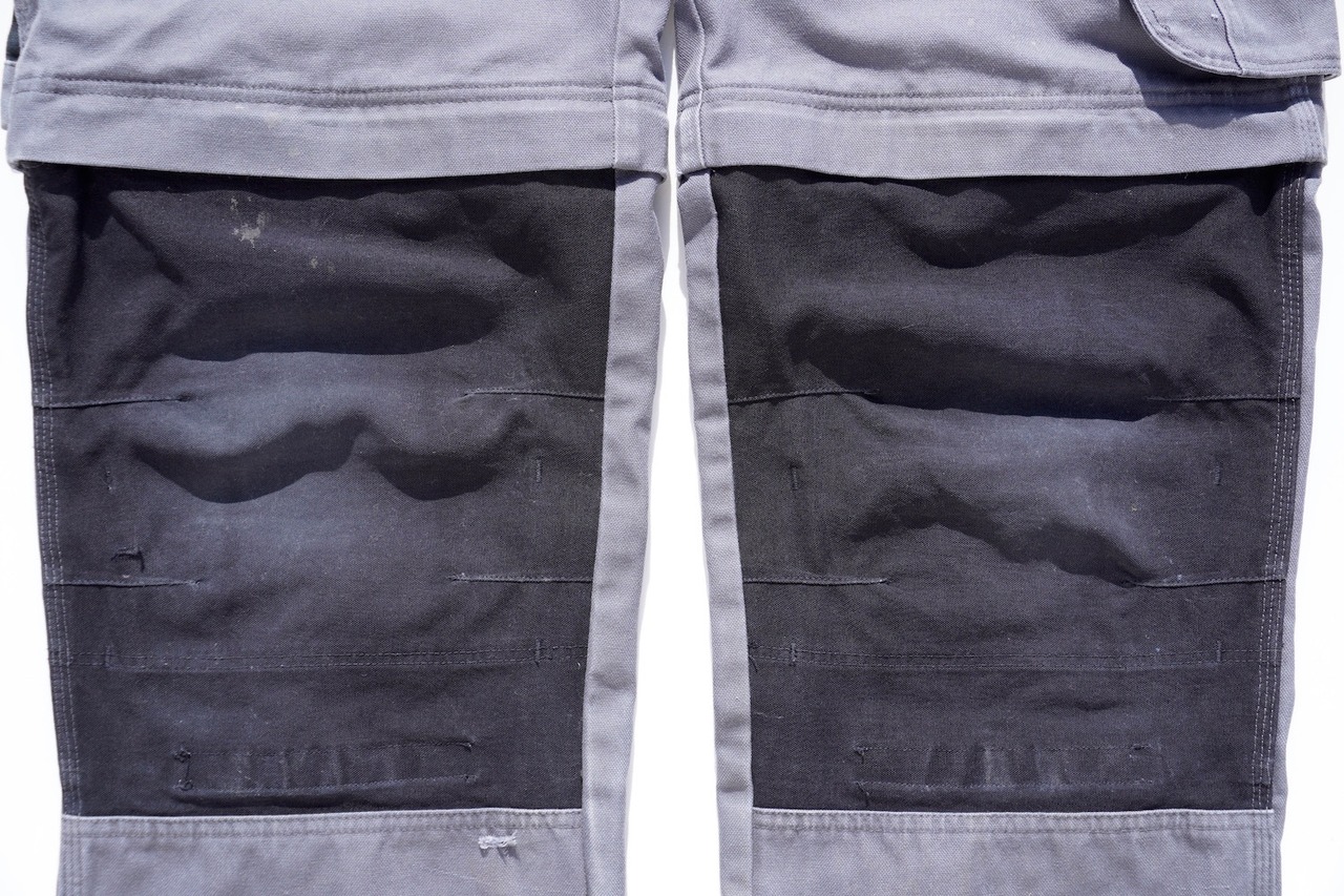多彩なポケットを装備した、タフなキャンバス生地のダブルニーデザイン。