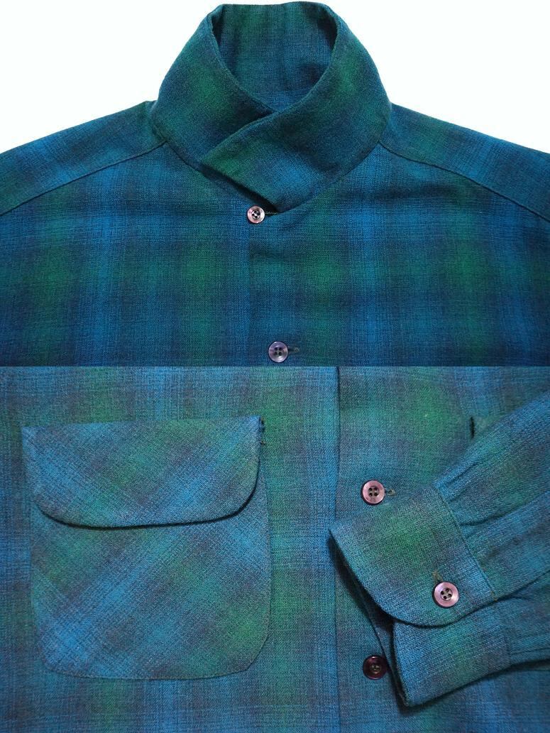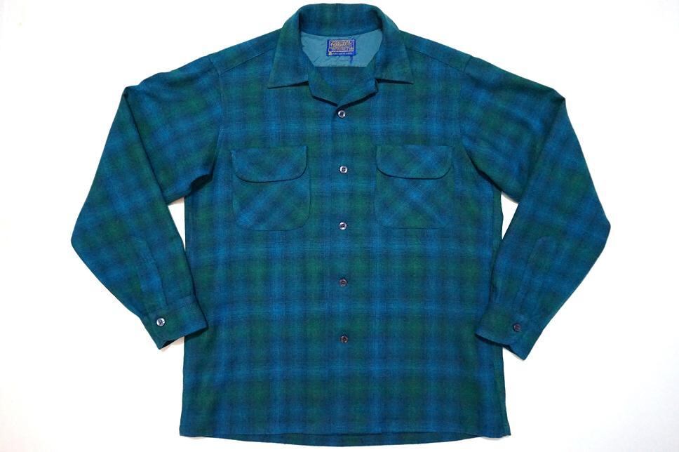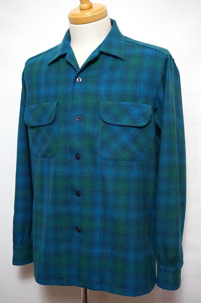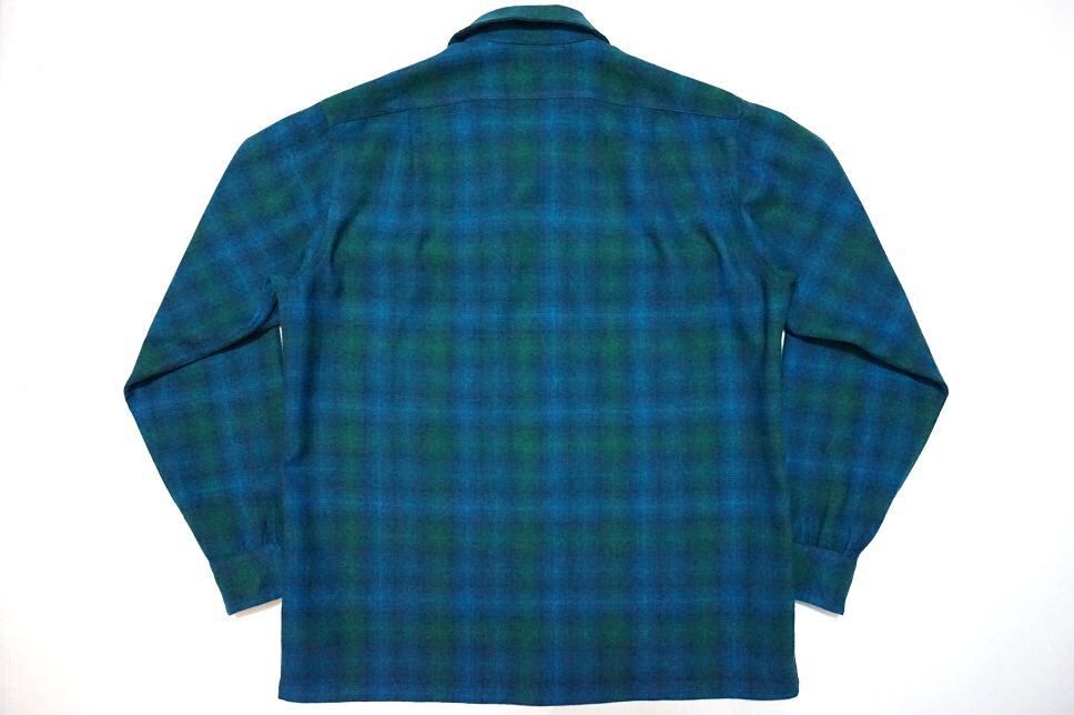 美品 1960’s PENDLETON オンブレチェック ループカラーボックスシャツ ブルー×グリーン 表記(M) ペンドルトン