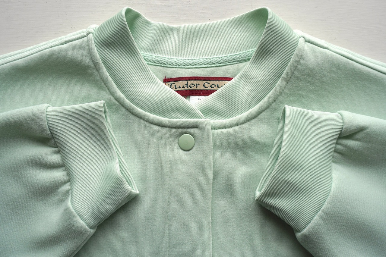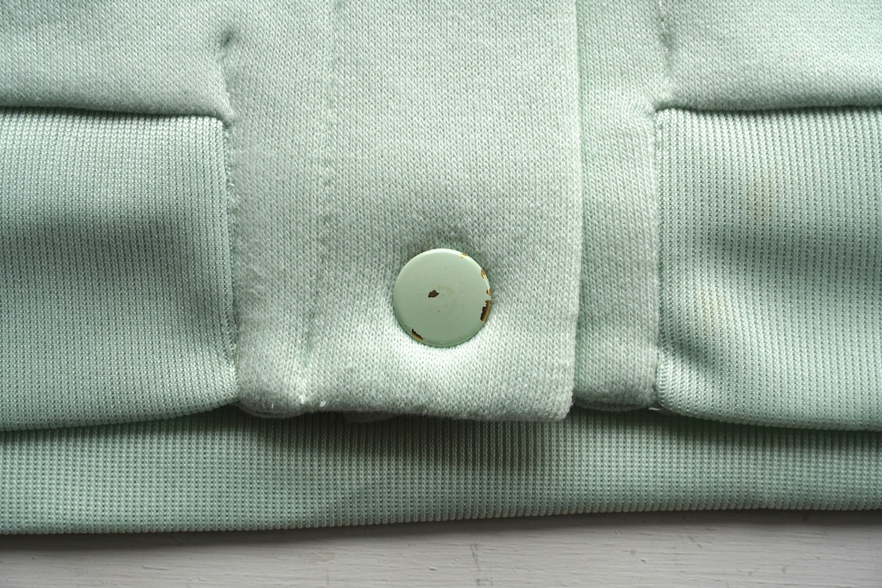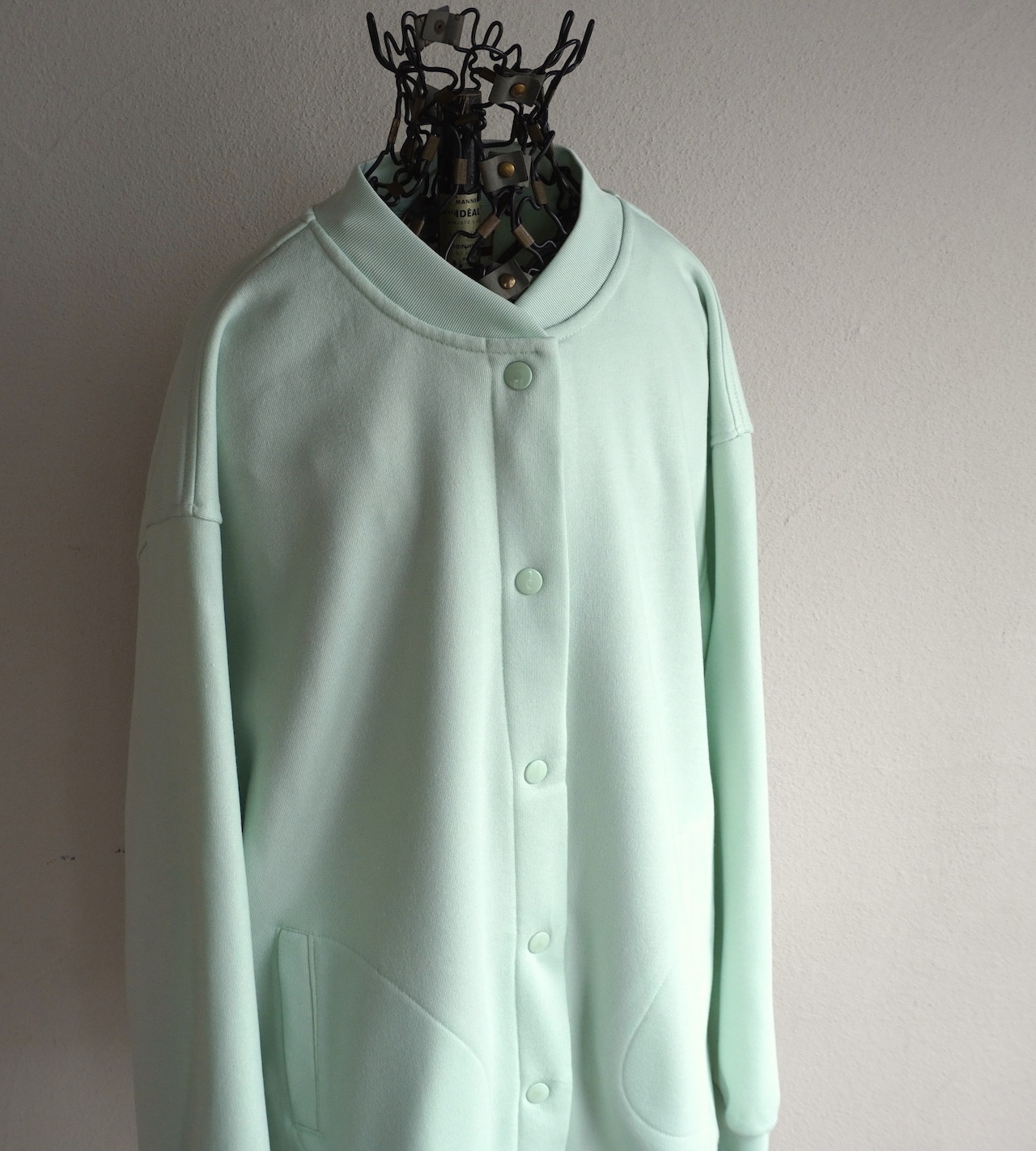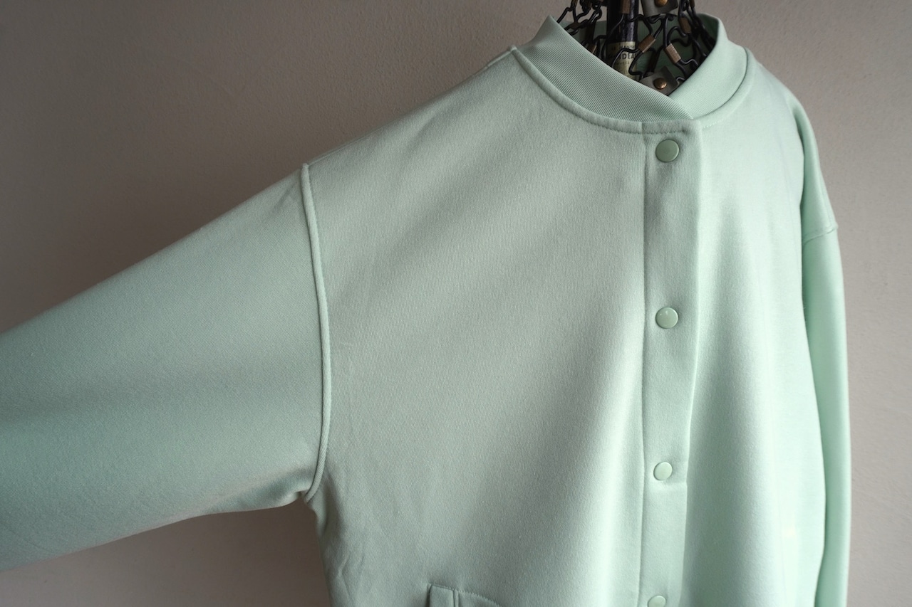 春らしいミントグリーンの色味が可愛い、フルスナップスウェットカーディガン。