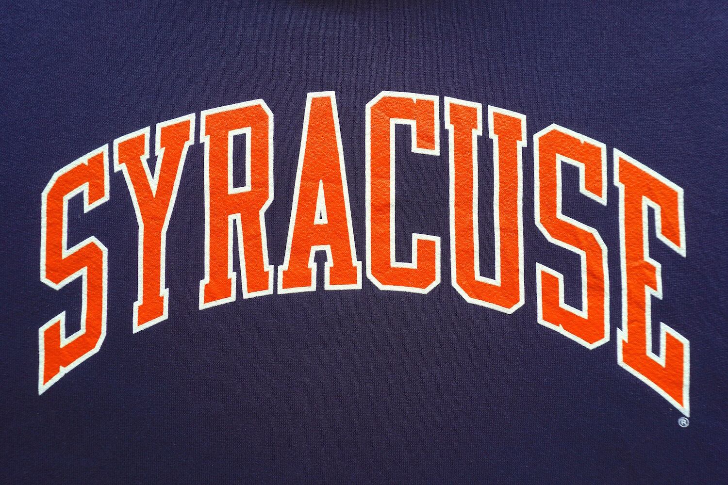 アメリカ・ニューヨーク州「SYRACUSE」(シラキュース大学)の、カレッジプリントスウェットパーカ。