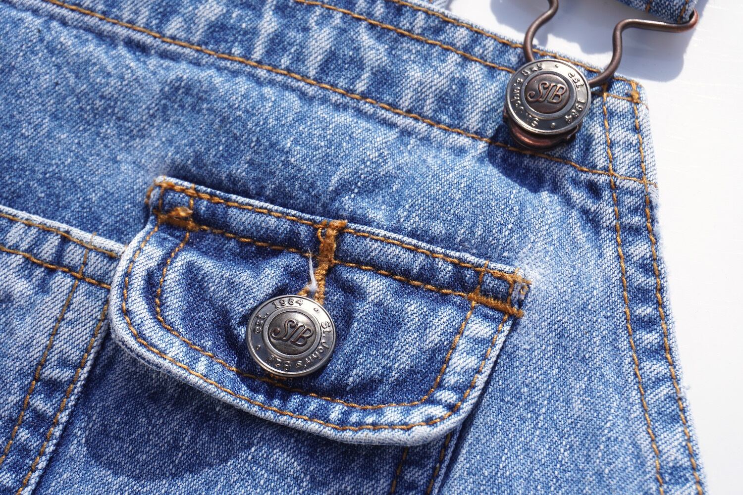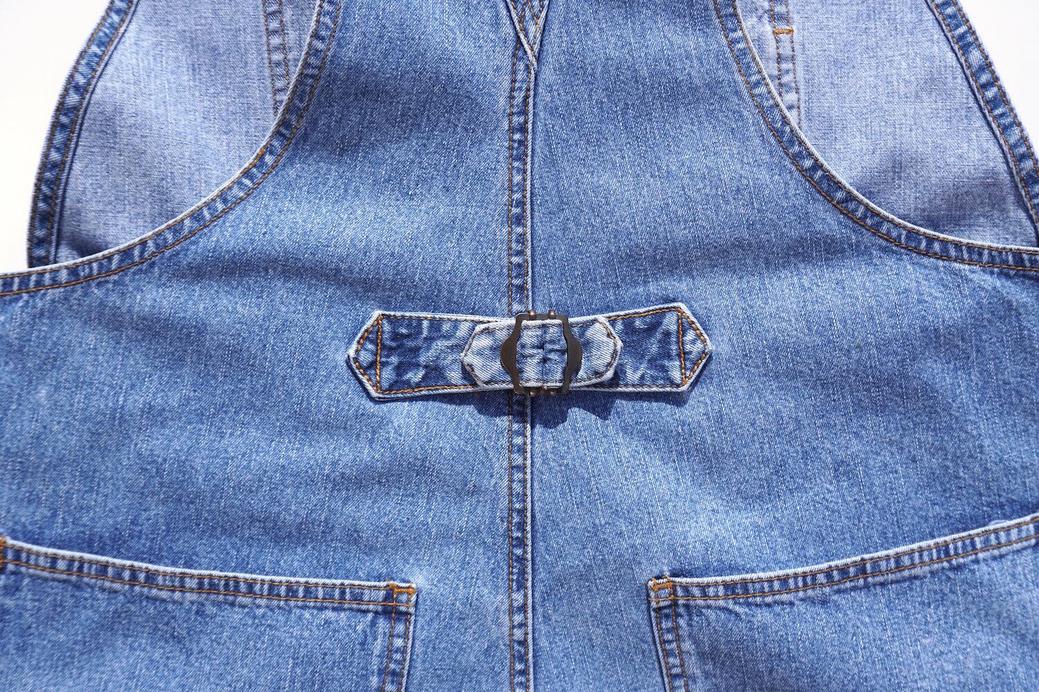 春っぽいストーンウォッシュブルーにバックルバックデザインが可愛い、デニムオーバーオール。