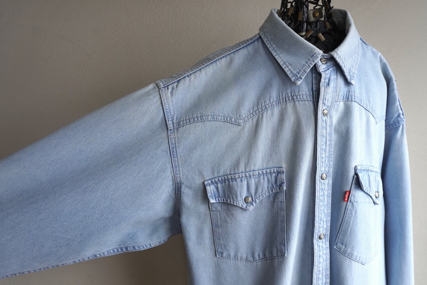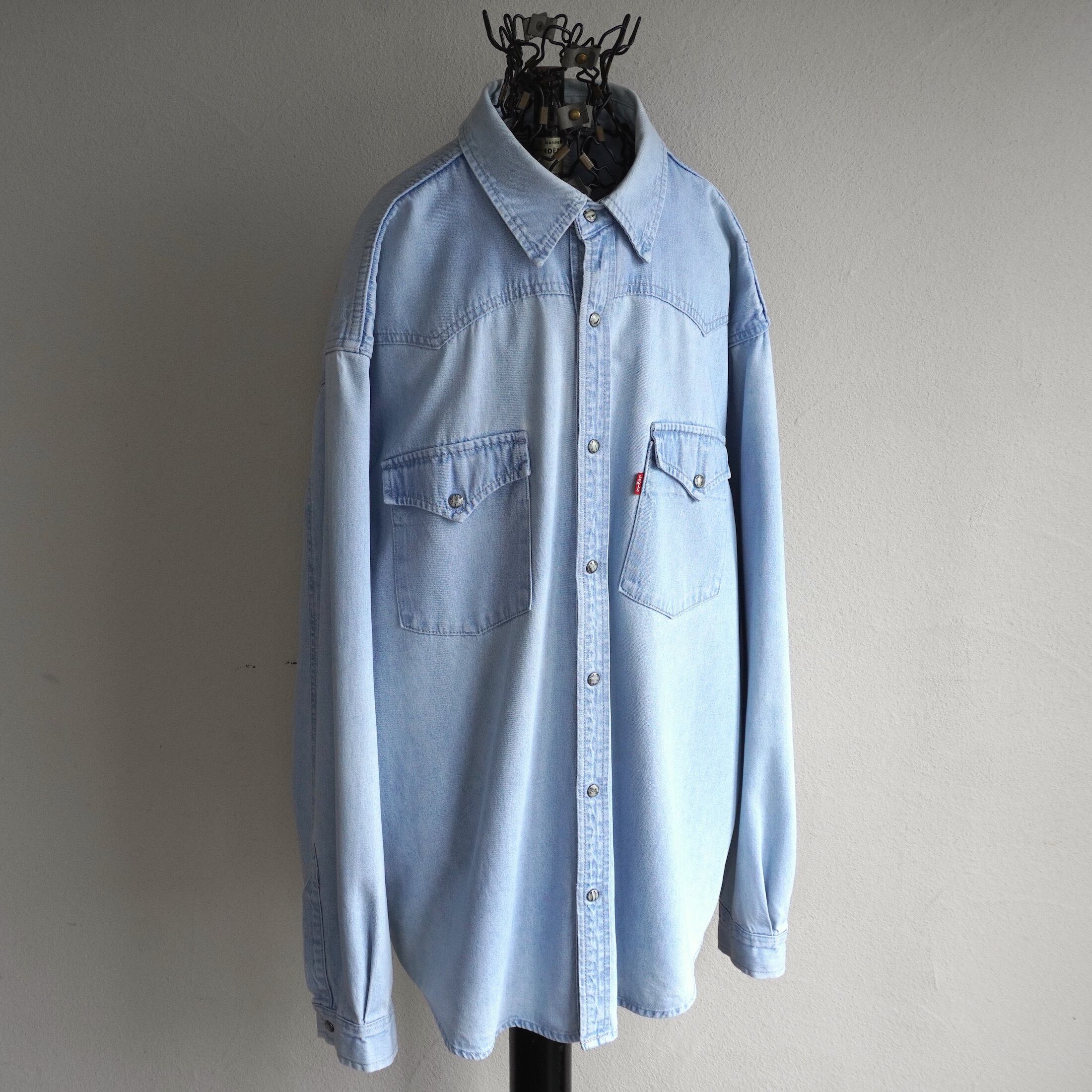 1990's [Levi's] ルーズフィット L/S デニムウエスタンシャツ アイスウォッシュブルー 表記(men's XL) リーバイス ヴィンテージ