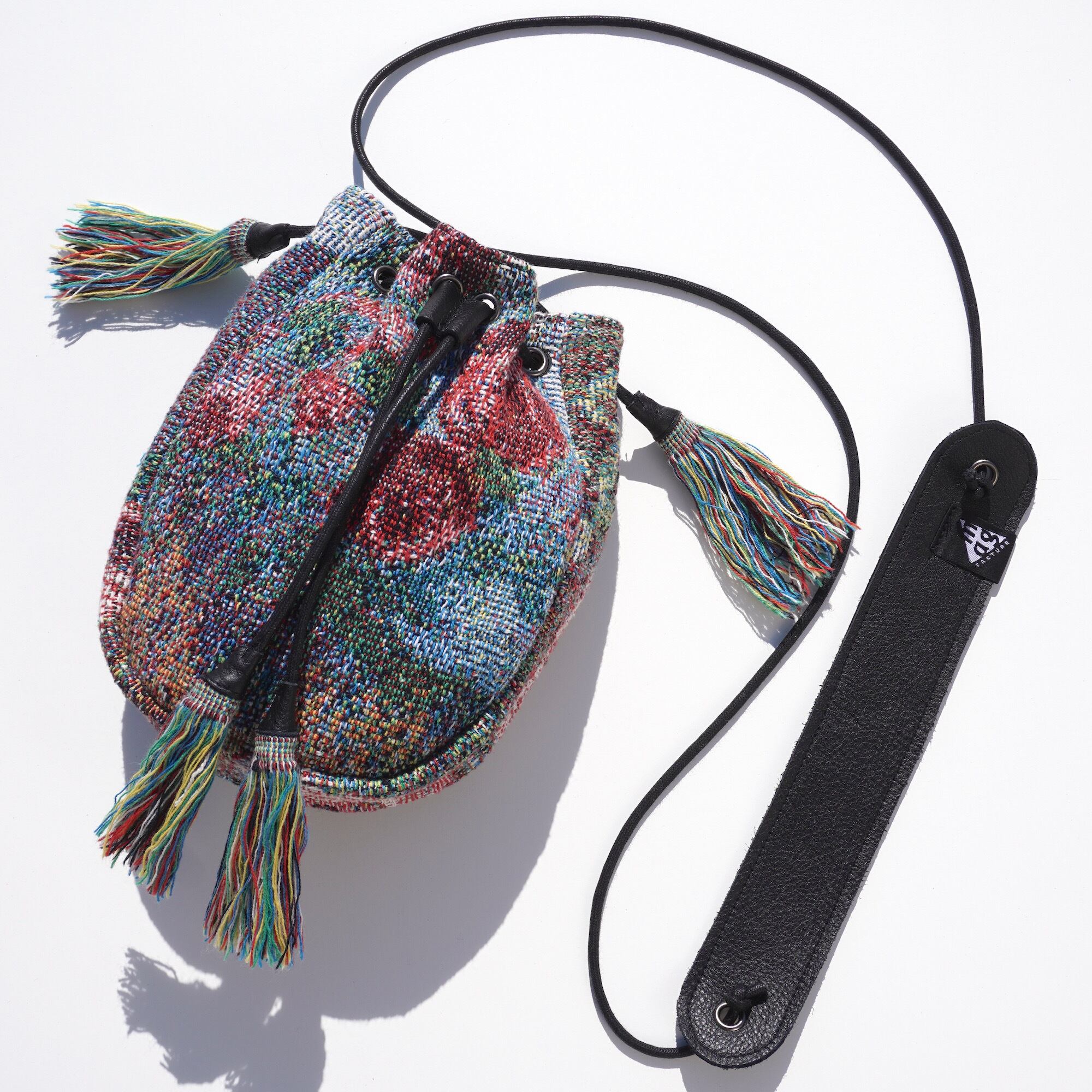エレガントなアート柄に、フリンジタッセルとレザーショルダーバンドが上品な印象。
