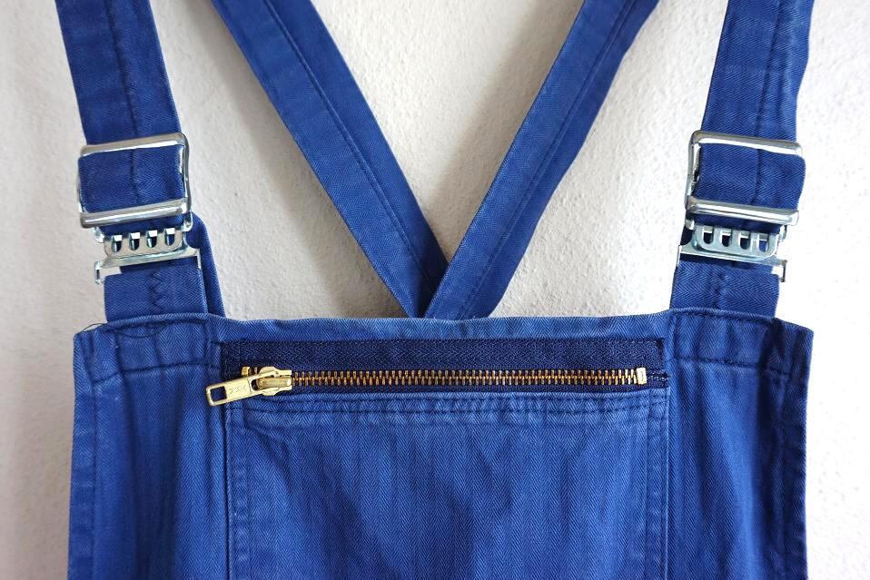綺麗な色落ちが楽しめるヘリンボーンコットンのユーロワークオーバーオール。