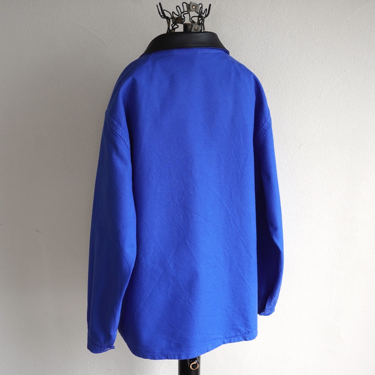 1990's レザーカラーカスタム フレンチワークカバーオール 100%コットン ブルー 表記(48) フランス ユーロワーク ヴィンテージ