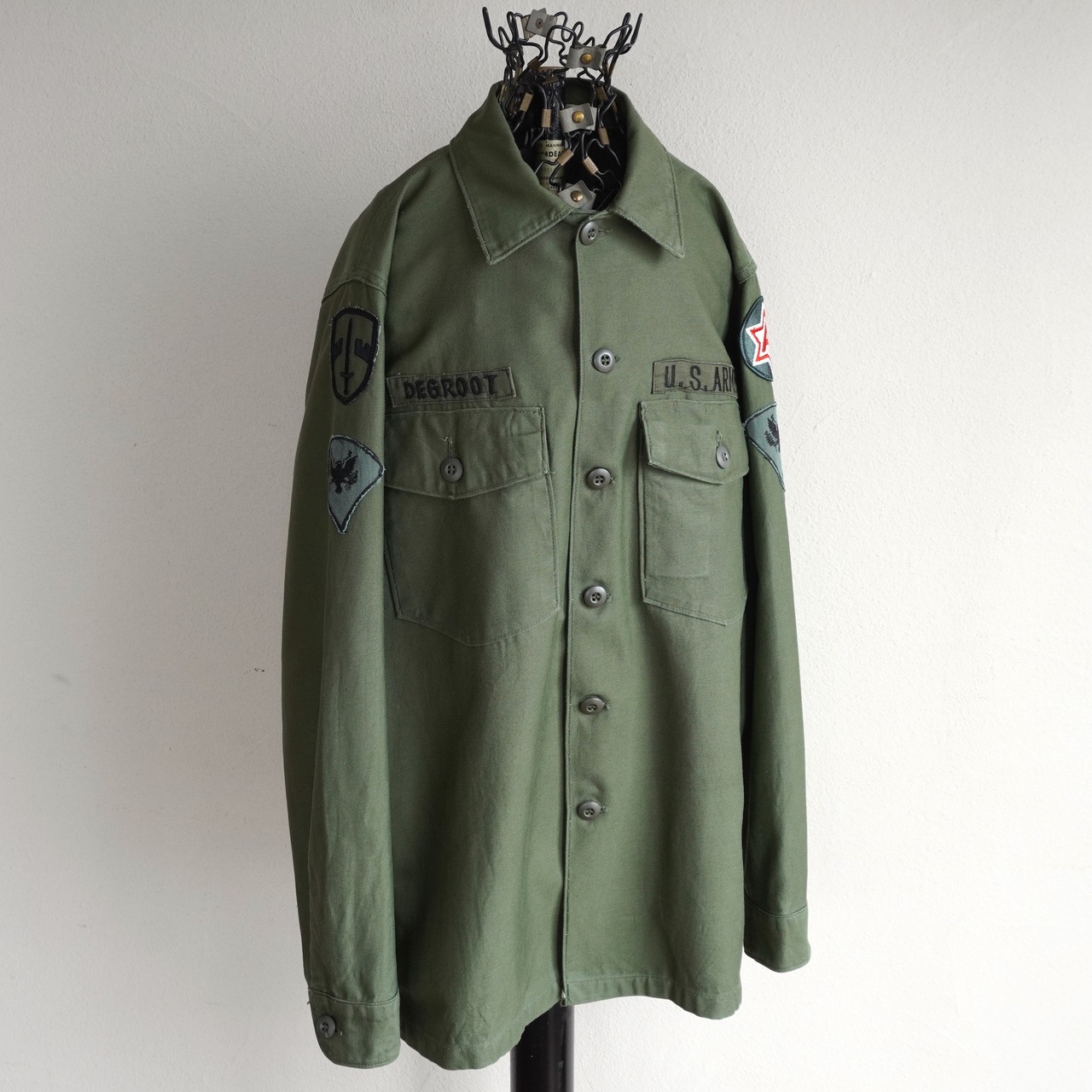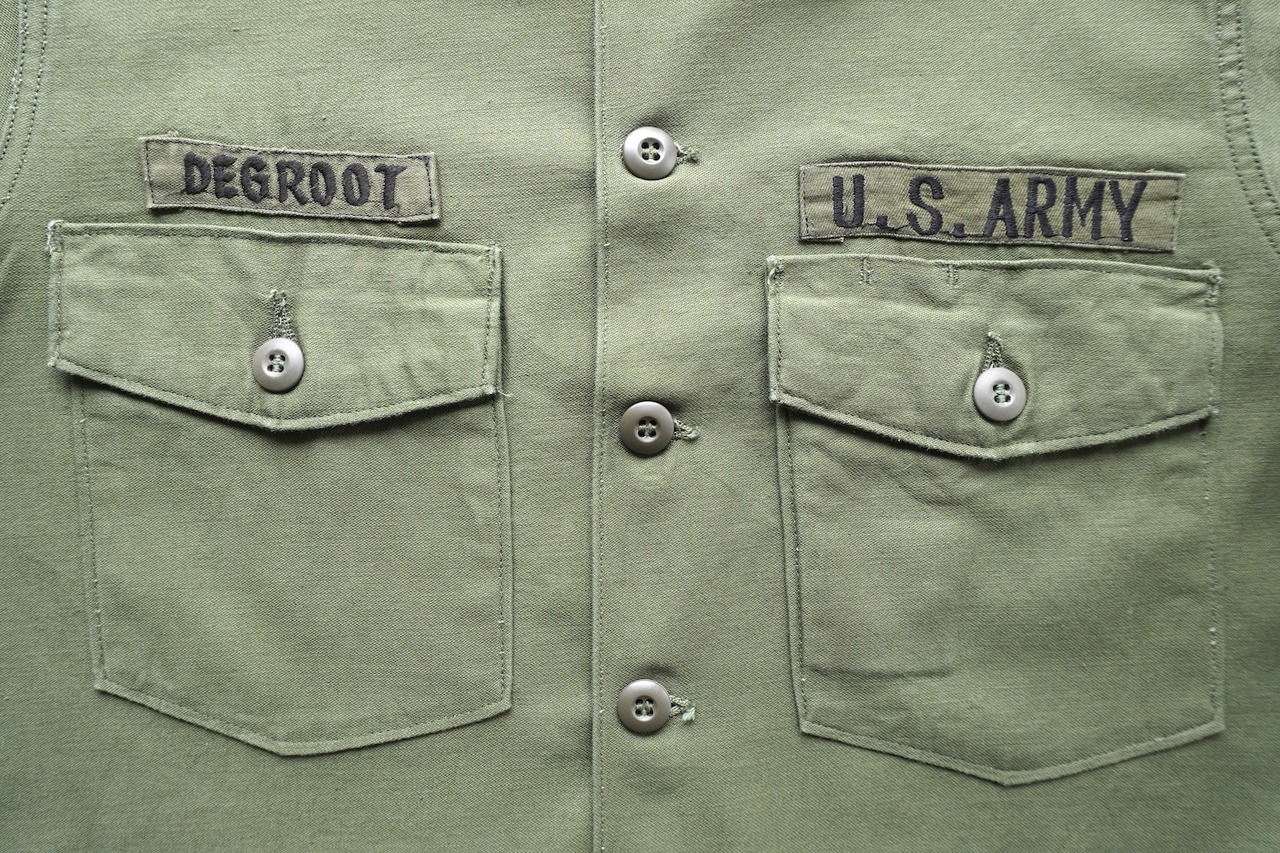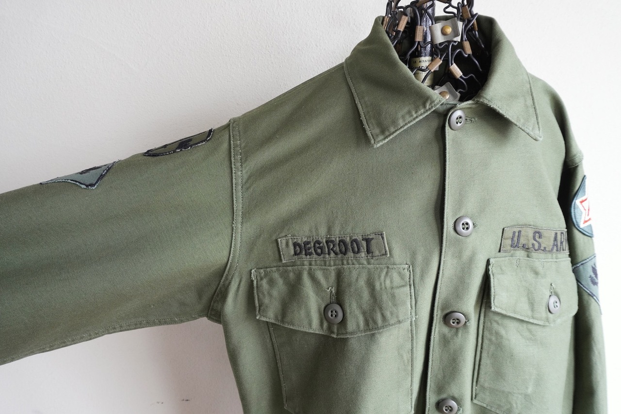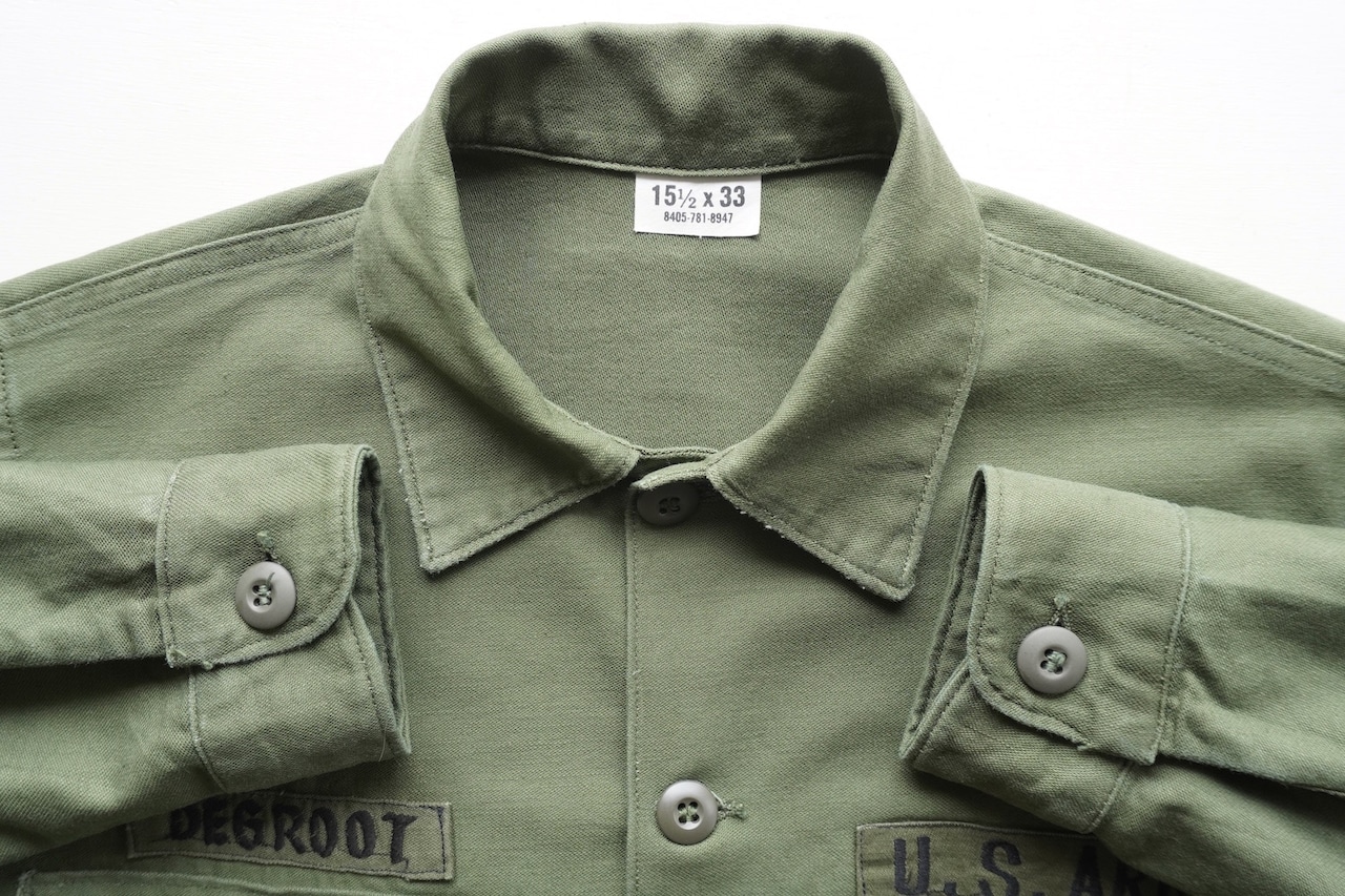 1 wash!! 1960's〜70's [U.S.ARMY] "OG 107" コットンサテン ユーティリティシャツ オリーブグリーン 表記(15 1/2 × 33) ファティーグ アメリカ軍 ミントコンディション ヴィンテージ