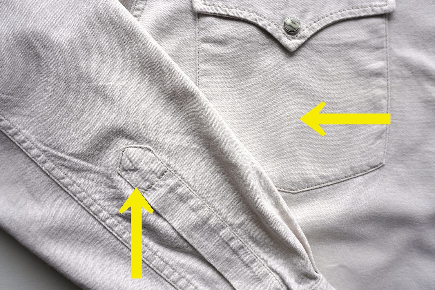 【コンディション】USED感・右ポケット/右袖/背中左にほぼ目立たない程度の薄小シミはありますが、特に目立つダメージはありません。