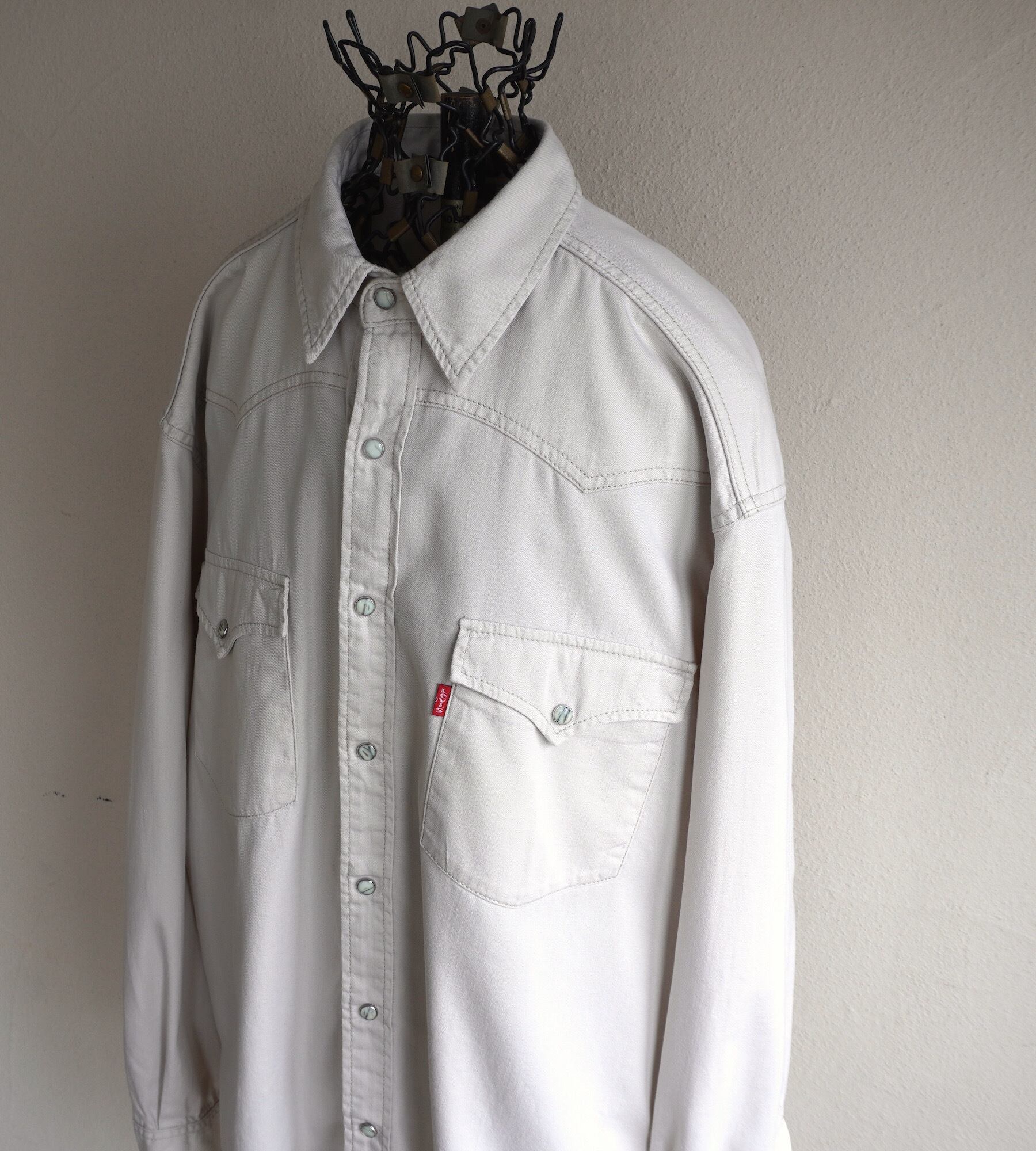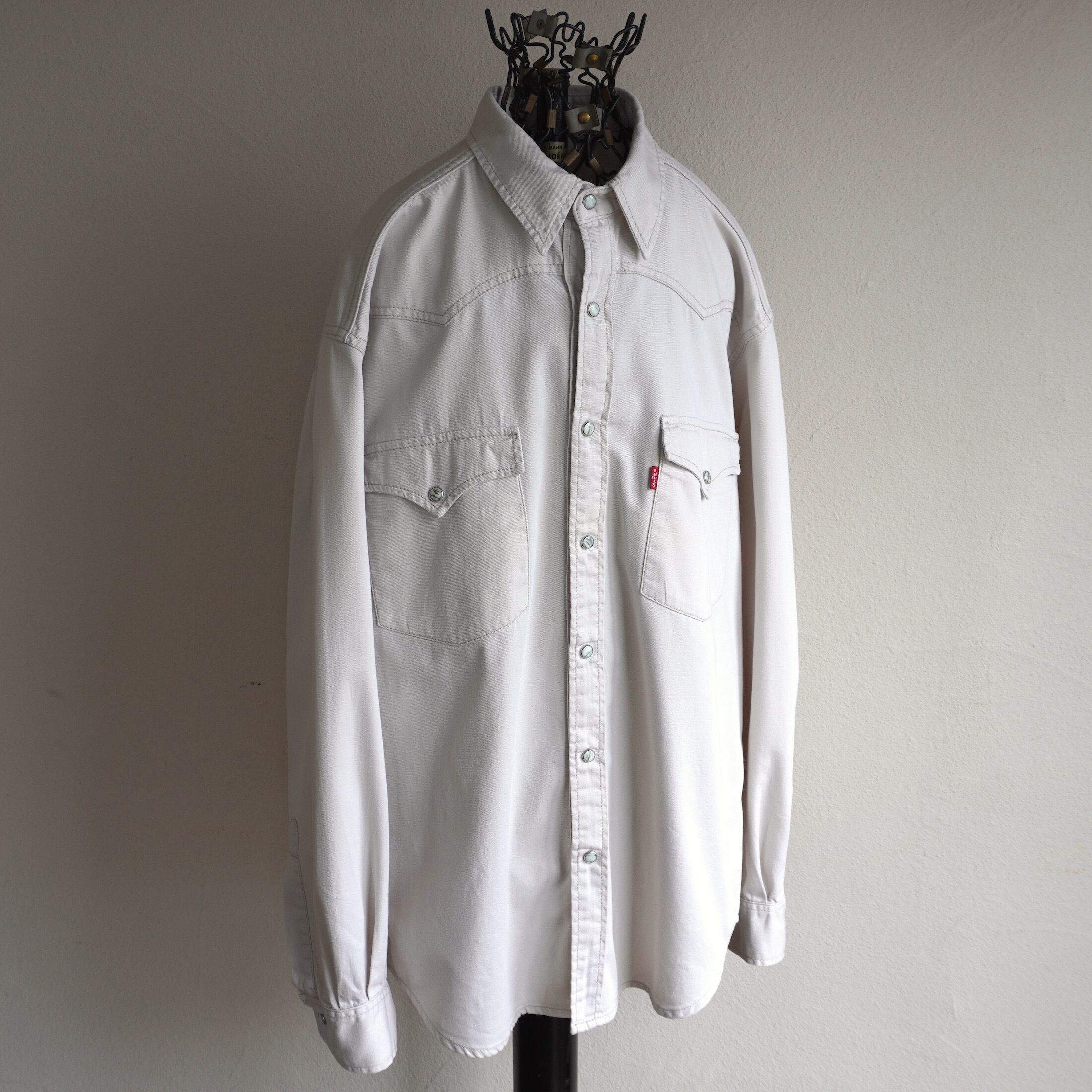 1990's [Levi's] ルーズフィット L/S コットンツイル ウエスタンシャツ アイボリー 表記(men's M) リーバイス ヴィンテージ