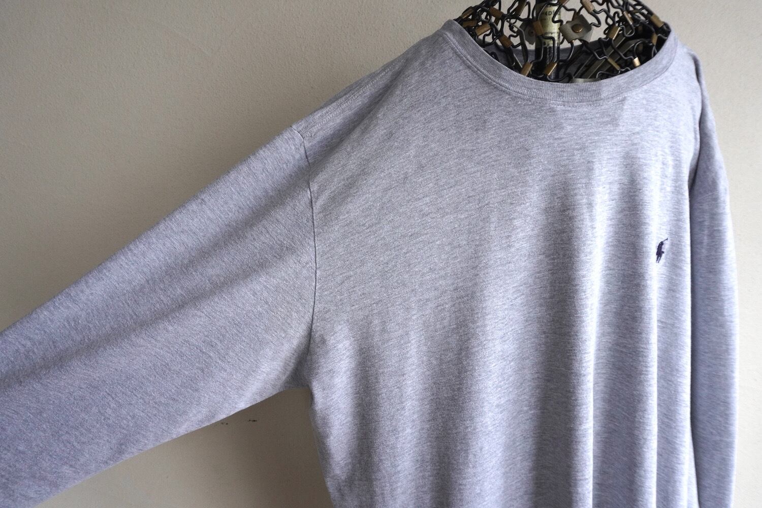 1990's〜 [Polo by Ralph Lauren] ワンポイントポニー刺繍 クルーネック ロングスリーブTシャツ ヘザーグレー 表記(men's XXL) ロンT ラルフローレン ヴィンテージ