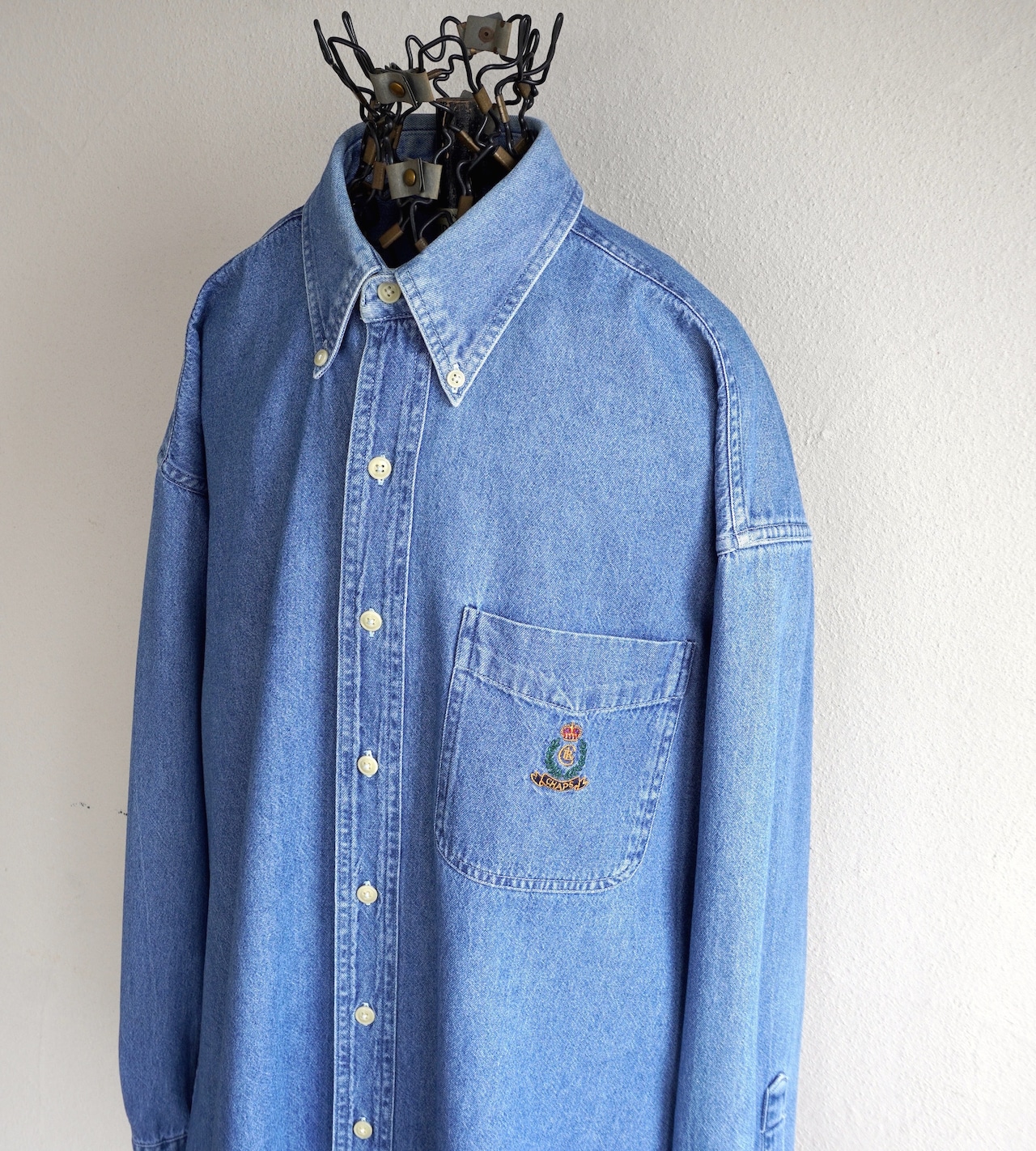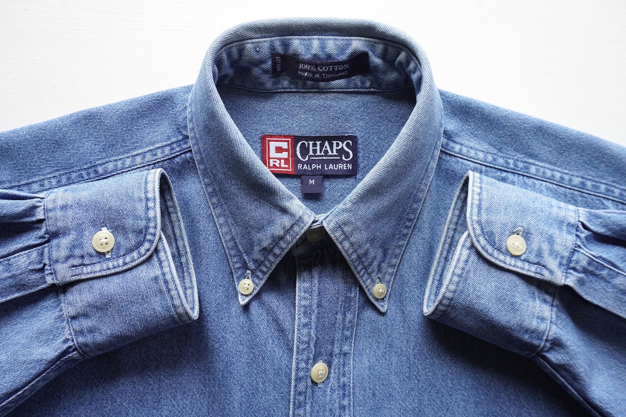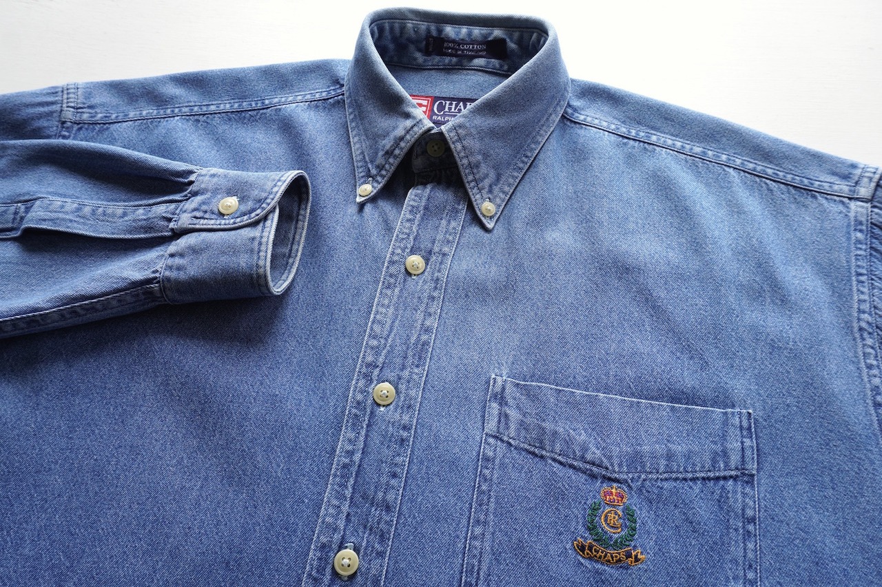 1990's [CHAPS] ワンポイント刺繍 L/S ボタンダウン デニムシャツ ブルー 表記(men's M) Ralph Lauren ラルフローレン ヴィンテージ