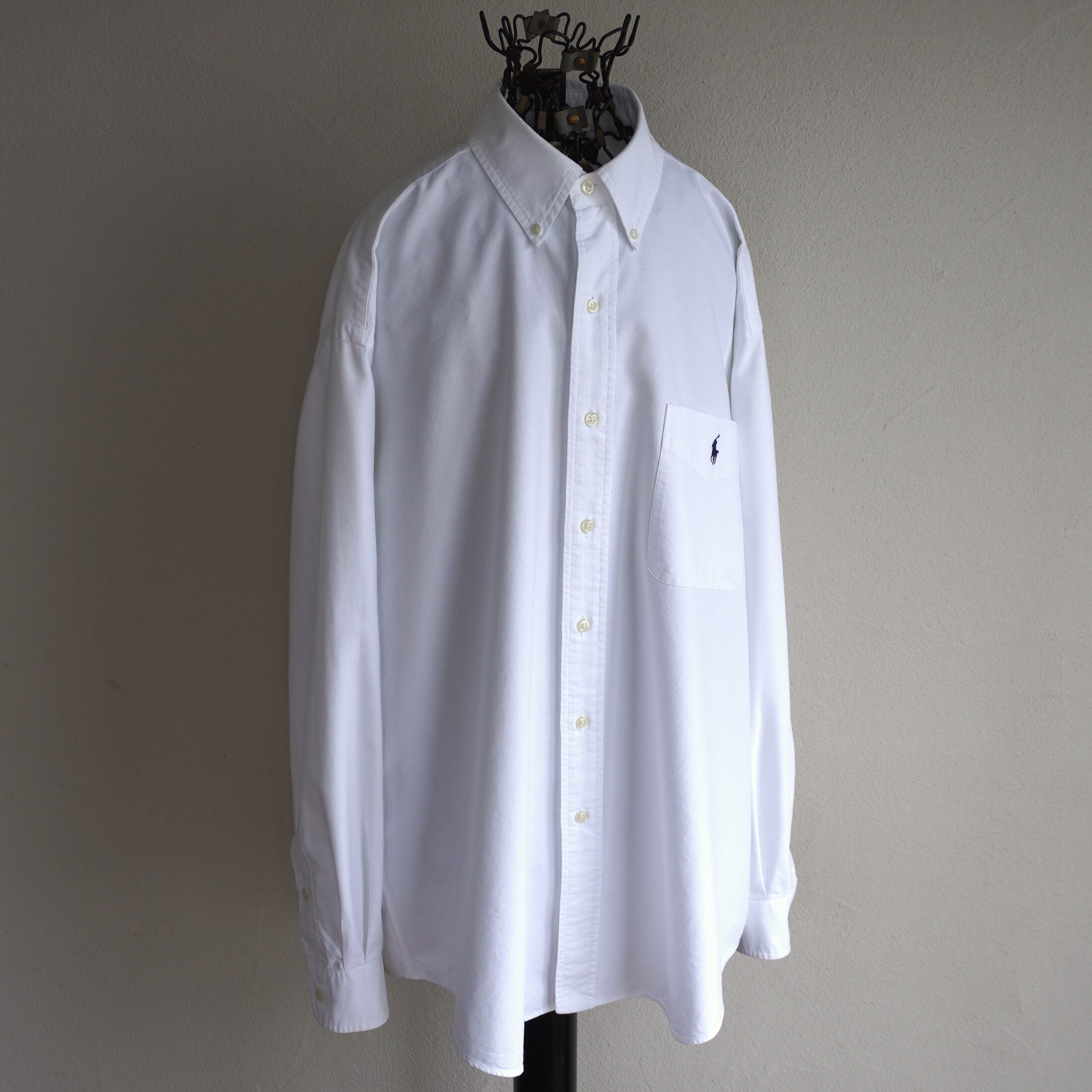 1990's [Ralph Lauren] "BIG SHIRT" ワンポイントポニー刺繍 L/S ボタンダウン オックスフォードシャツ ホワイト 表記(men's M) ソリッド 白 無地 ラルフローレン オールド ヴィンテージ