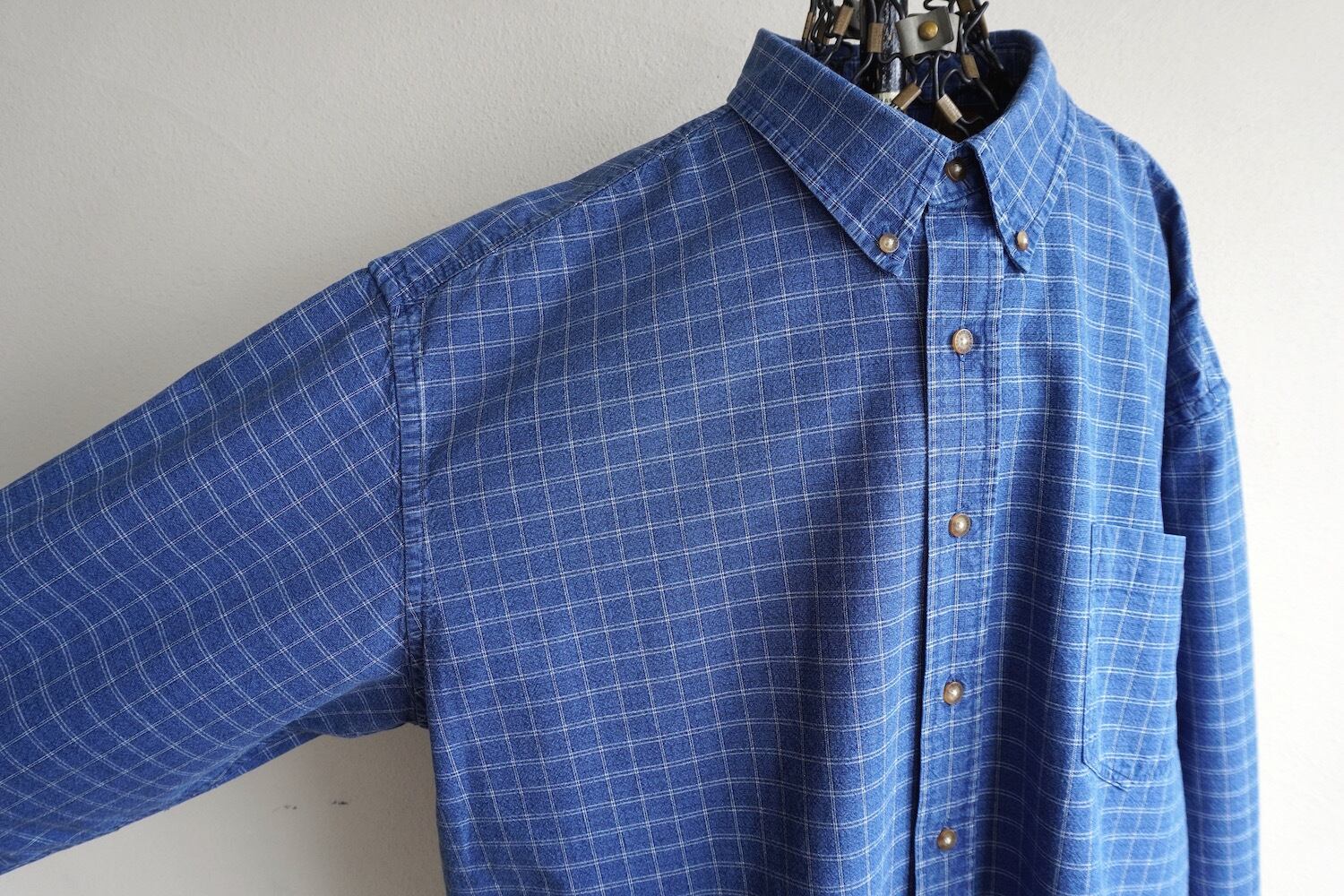 1990's [ST JOHN'S BAY] ウィンドウペンチェック L/S ボタンダウン コットンシャツ インディゴブルー 表記(men's XL) ヴィンテージ