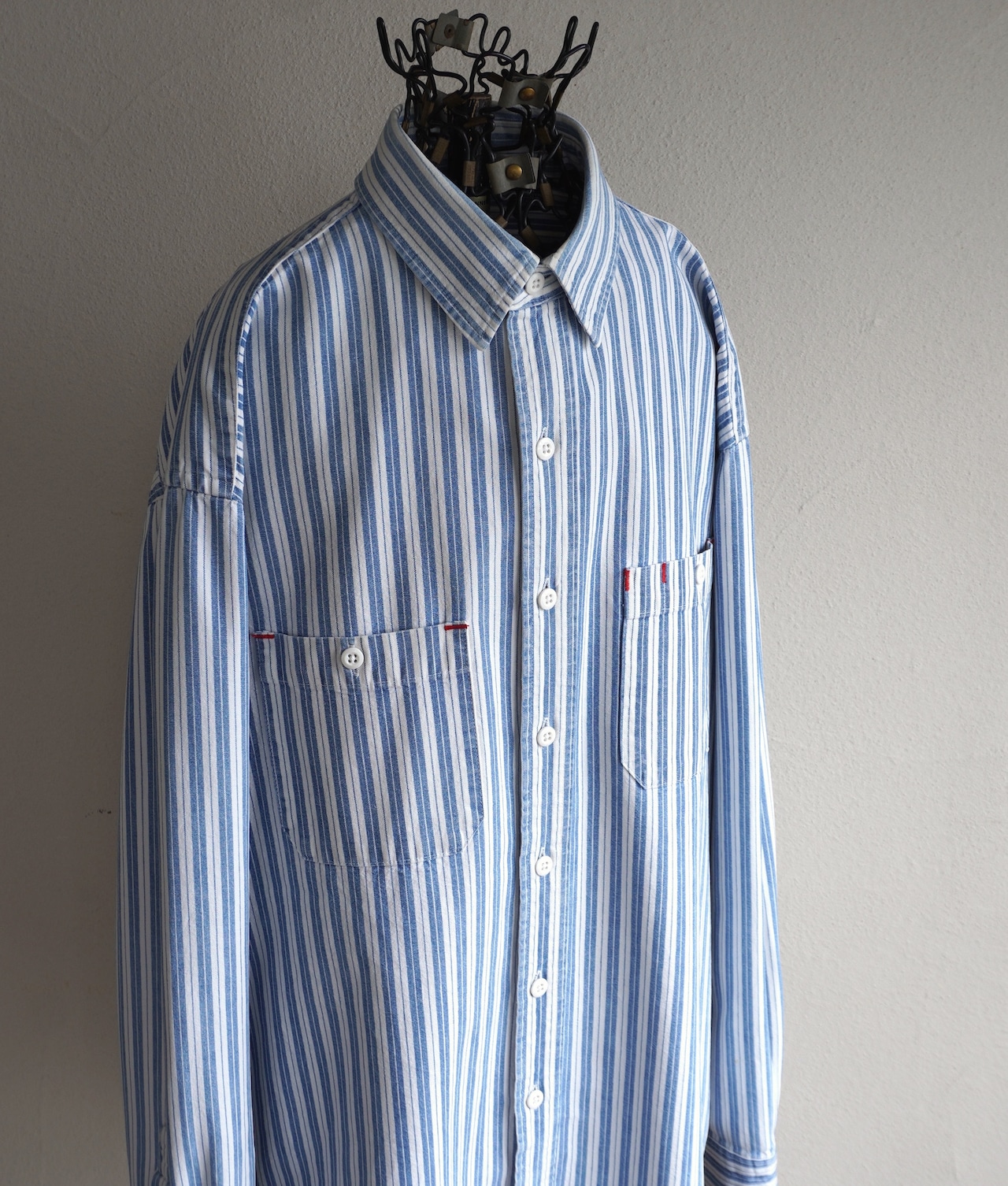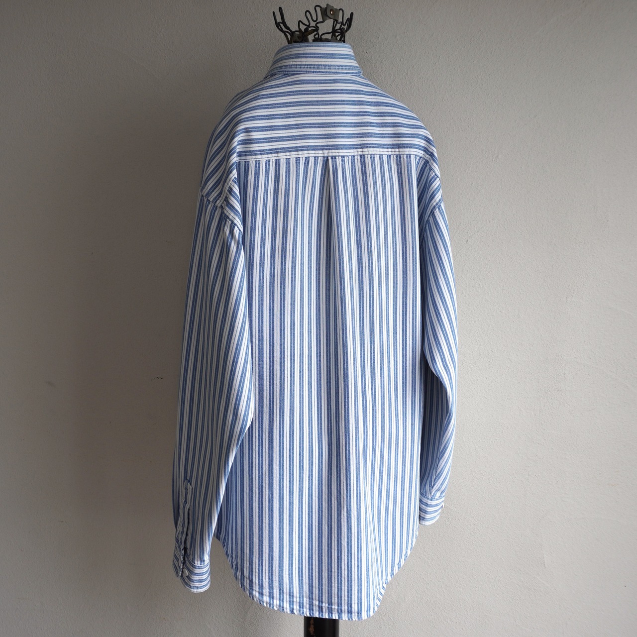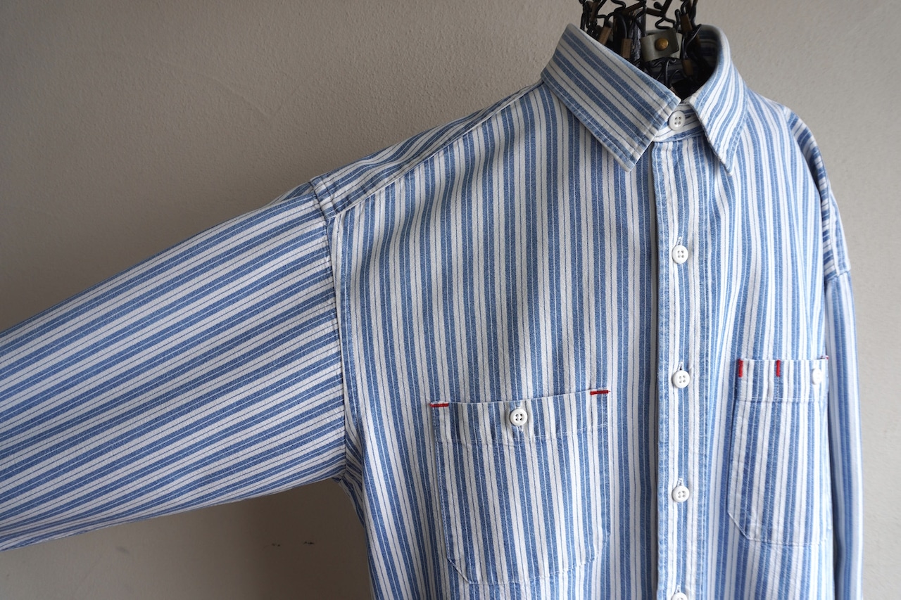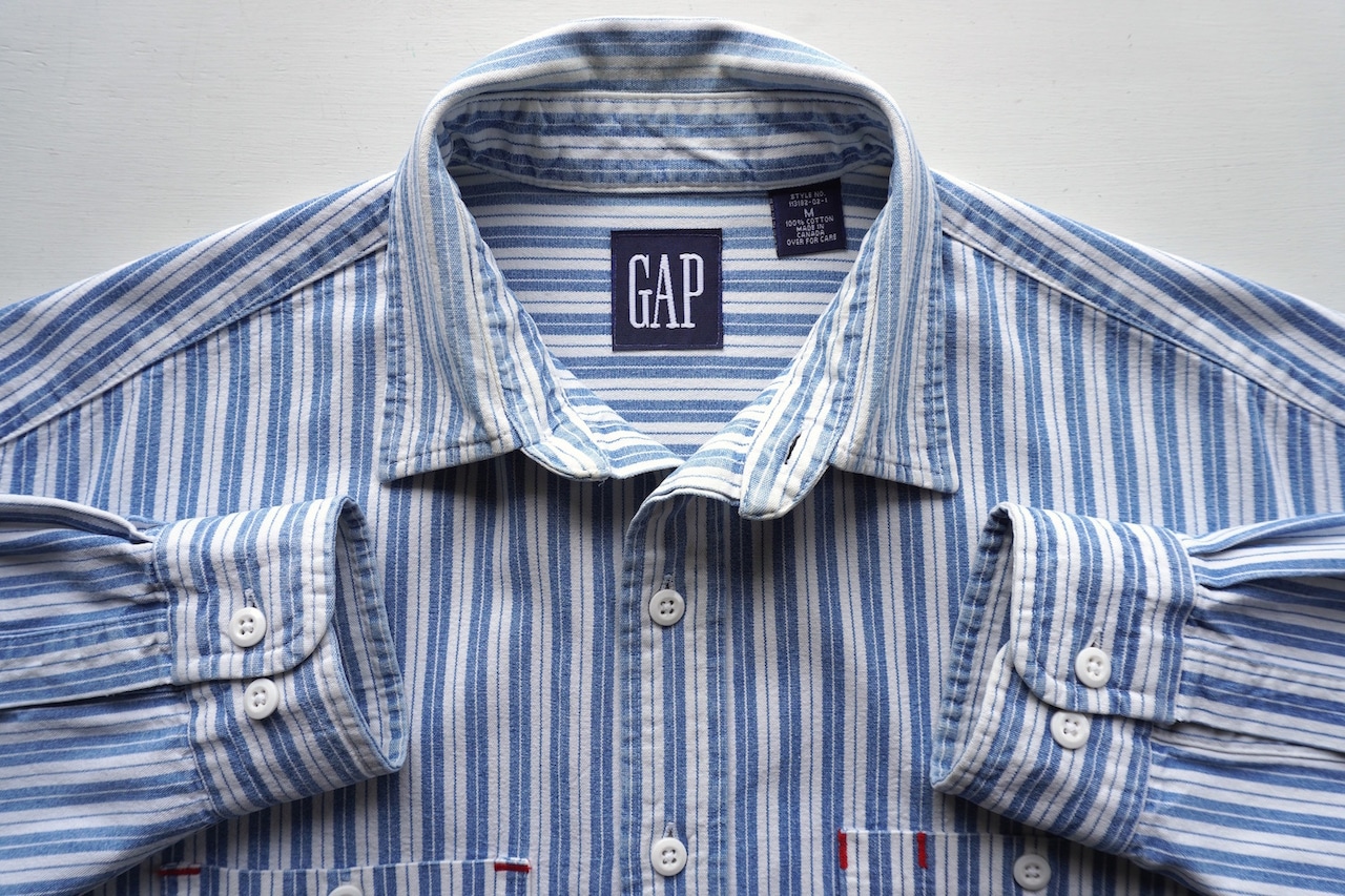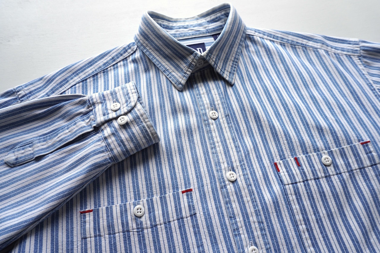 1990's CANADA製 [GAP] ヒッコリーストライプ L/S コットンシャツ 表記(men's M) 紺刺繍タグ ルーズフィット オールドギャップ ヴィンテージ