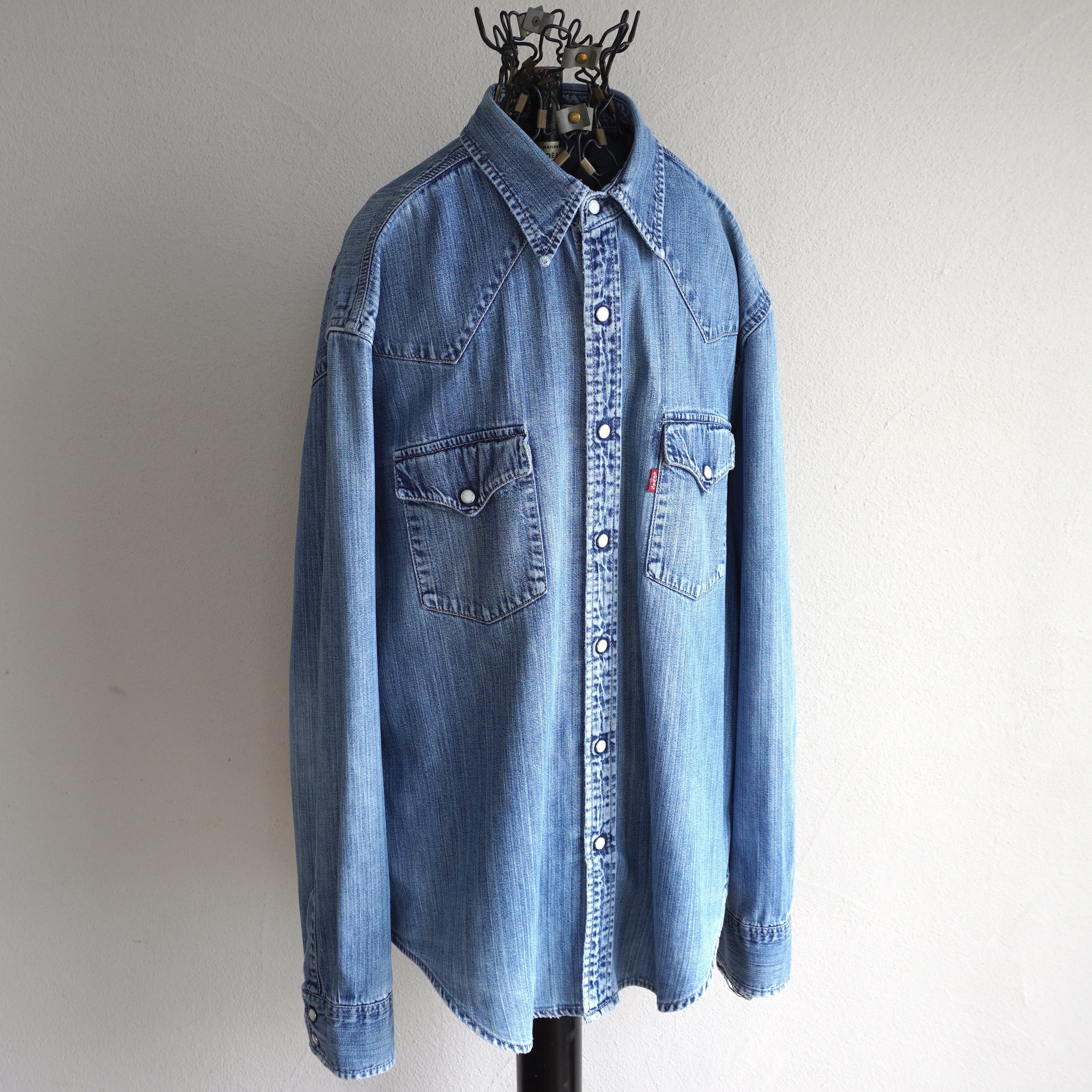 1990's [Levi's] フェード&ダメージ L/S デニムウエスタンシャツ ブルー 表記(men's L) 縦落ち リーバイス ヴィンテージ