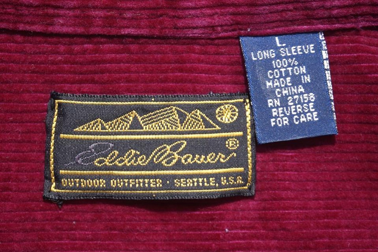 1990’s [Eddie Bauer] コーデュロイボタンダウンシャツ ワイン 表記(L) エディーバウアー