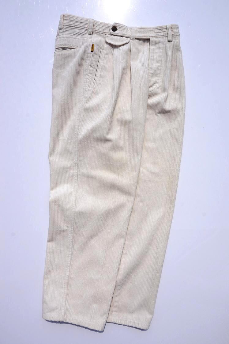 1980’s-90’s ITALY製 [ARMANI JEANS] 太畝・2タック コーデュロイスラックス オフホワイト 実寸(W32位) オールド ヴィンテージ アルマーニジーンズ