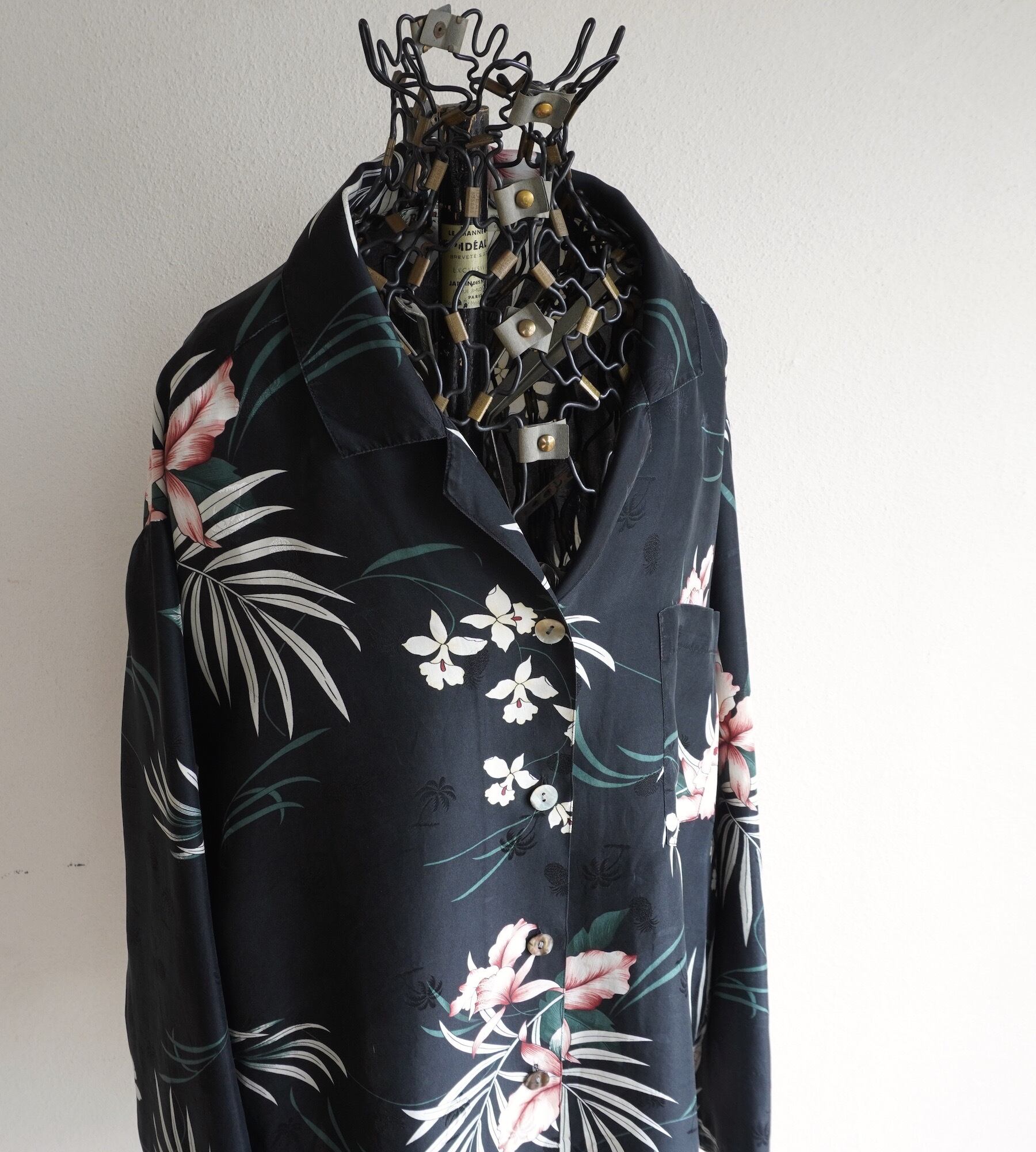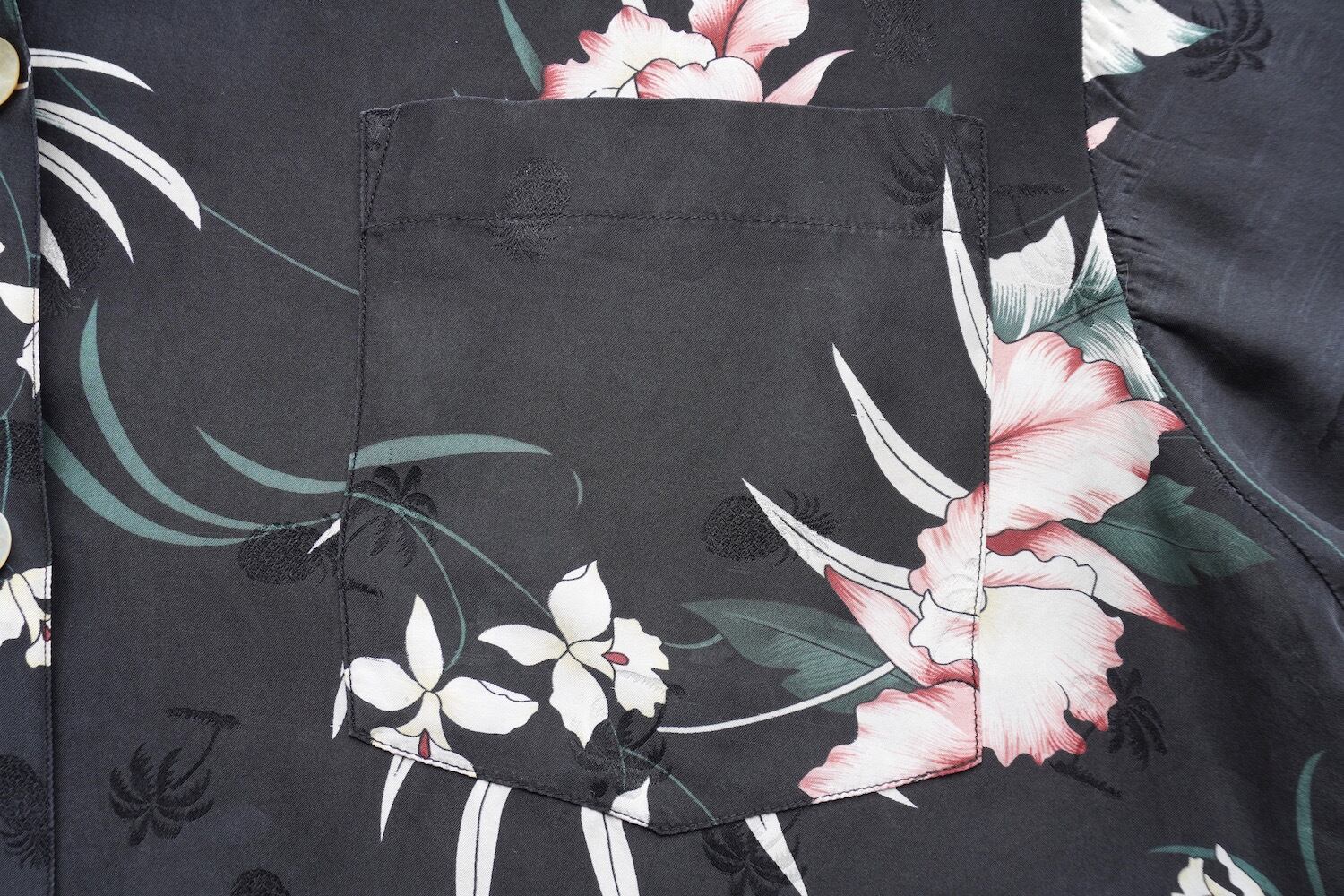2000's〜 [Tommy Bahama] 100%シルク フローラル&ボタニカル柄 パジャマ型リゾートシャツ ブラック 表記(women's M) ハワイアン アロハ