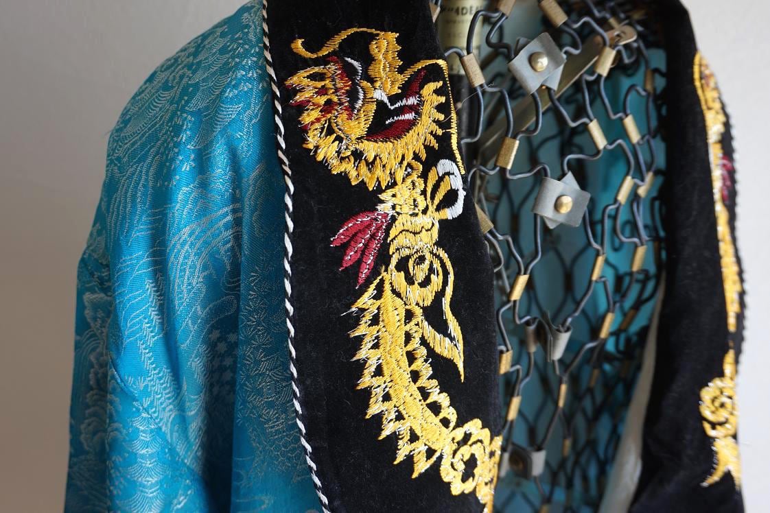 ショールカラーには勇壮で縁起の良い、金の昇り龍の刺繍。