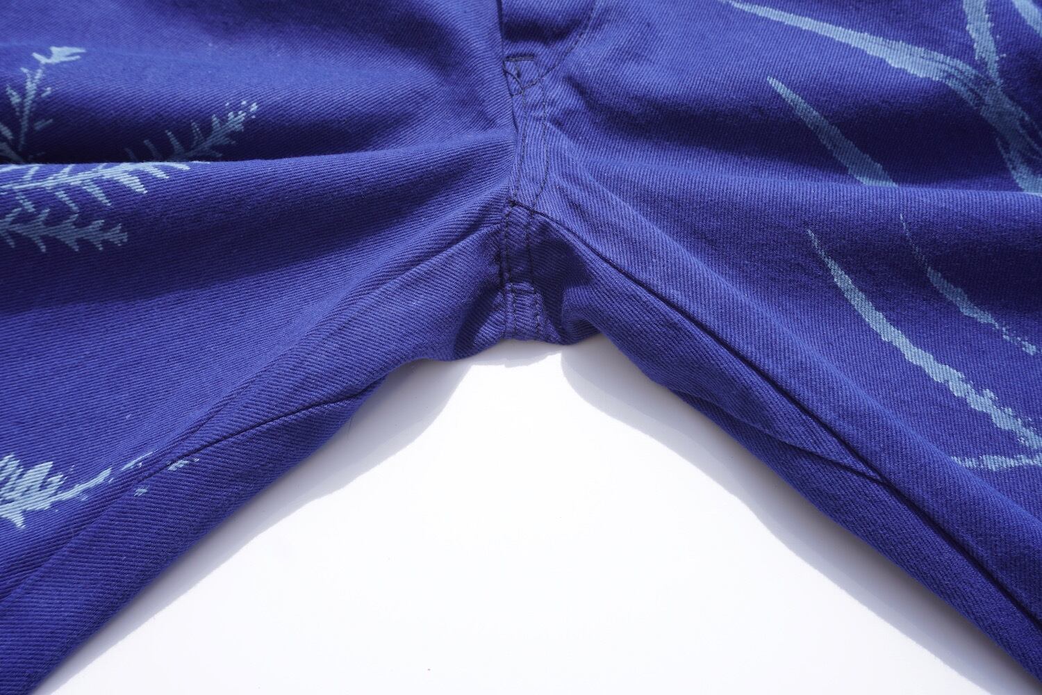 グレビレアやユーカリの葉を使ってボタニカルシャドーブリーチを施した、ユーロワークパンツ。