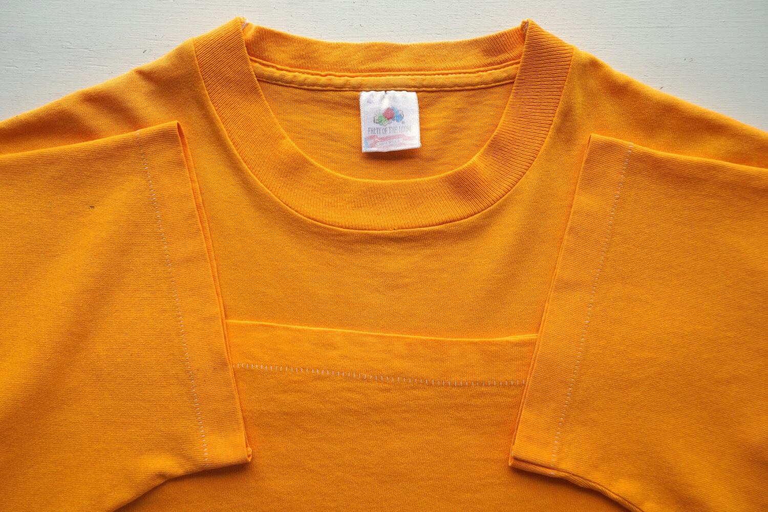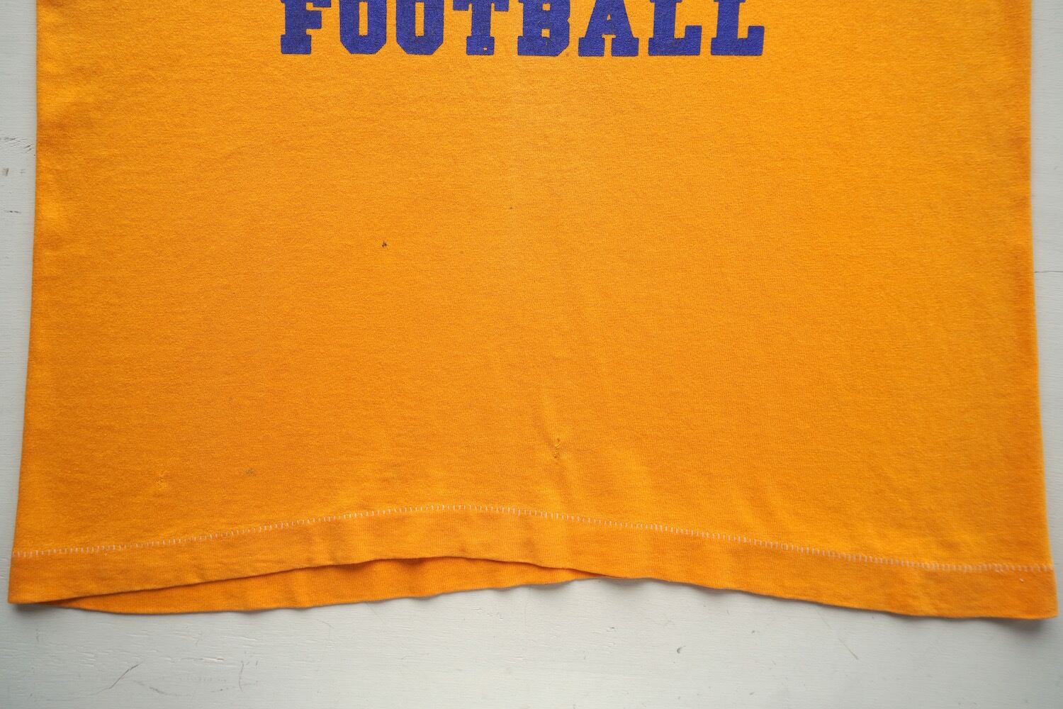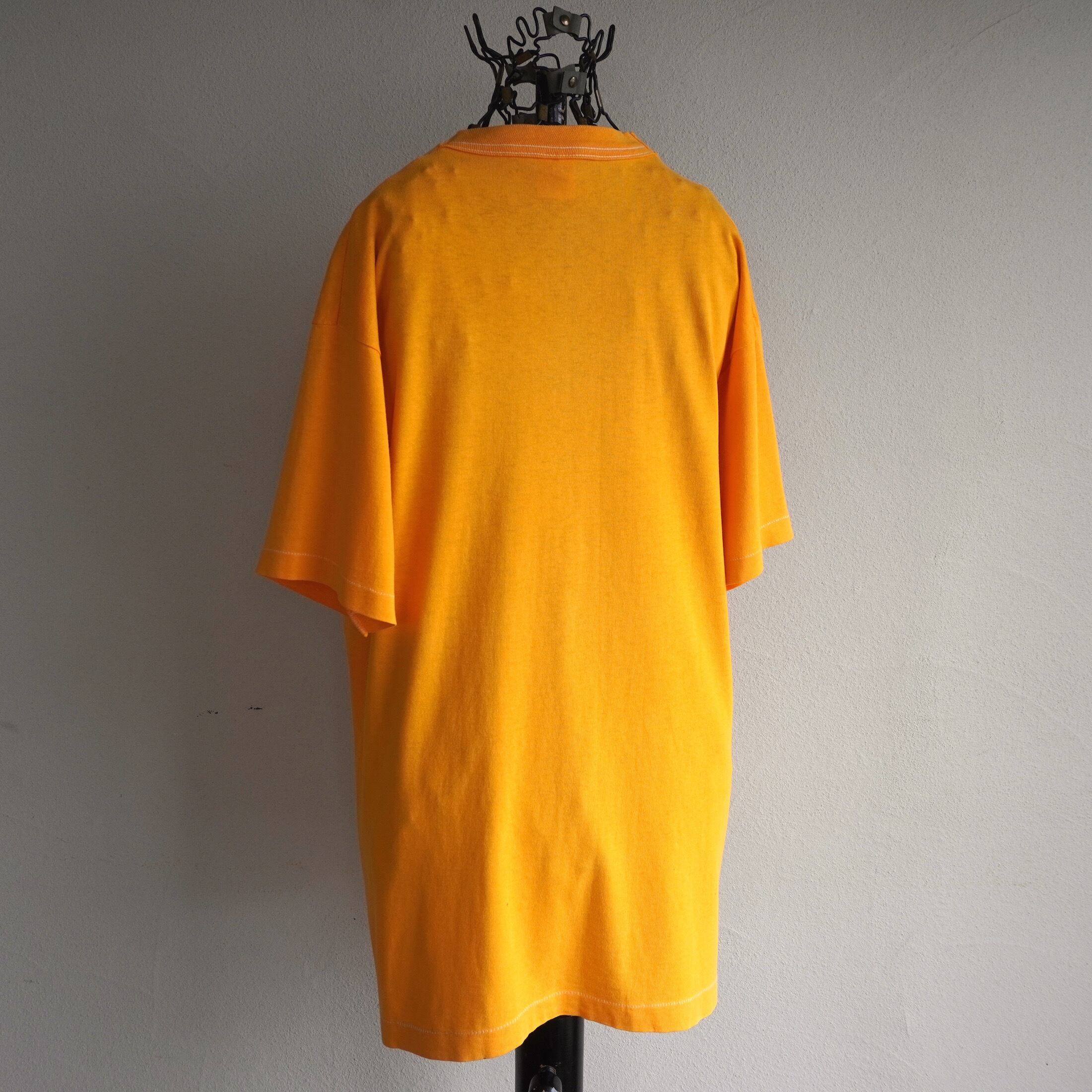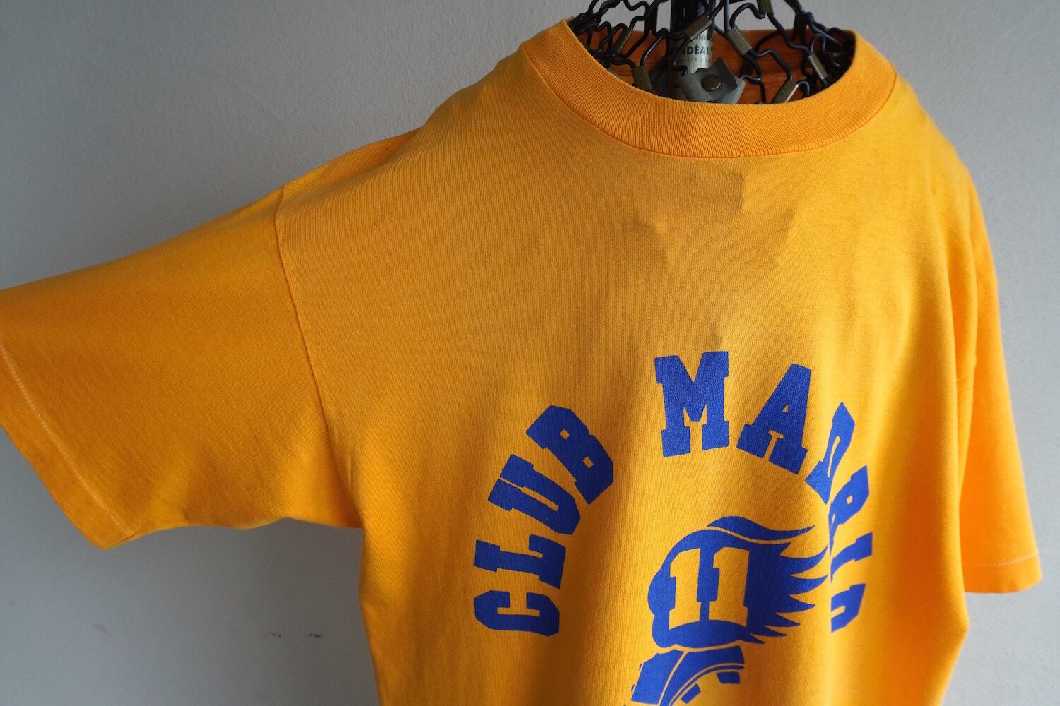 1990's USA製 [FRUIT OF THE LOOM] "CLUB MADRID FOOTBALL" ウイングフット 3段プリント クルーネックTシャツ インディアンイエロー 表記(men's M) シングルステッチ ヴィンテージ