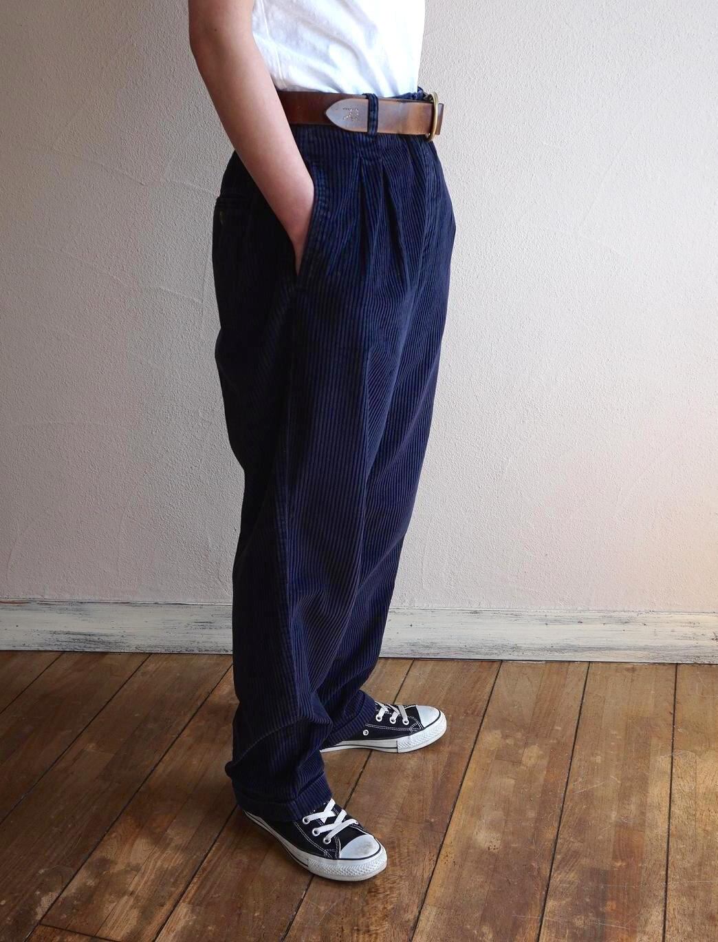 [Eddie Bauer] 太畝・2タック コーデュロイスラックス ネイビー 実寸(W29位) エディーバウアー