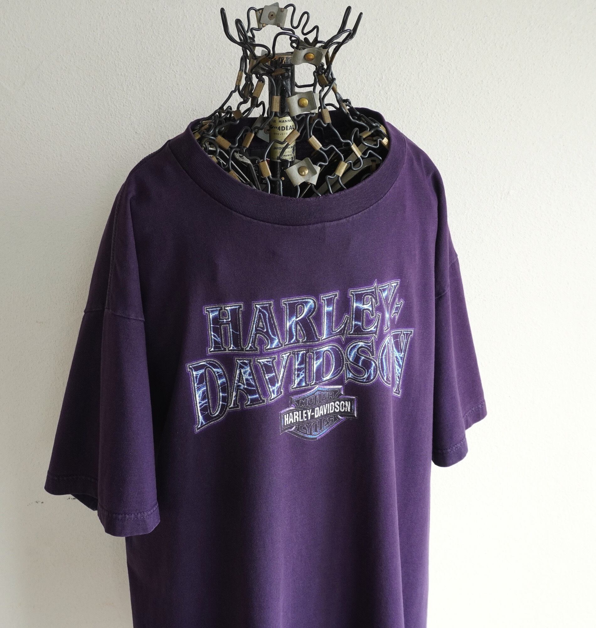 1990's USA製 [HARLEY-DAVIDSON] 両面プリント S/S Tシャツ ダークパープル 表記(men's XL) HOLOUBEK ヘヴィーウェイト 100%コットン ハーレー・ダヴィッドソン Y2K ヴィンテージ
