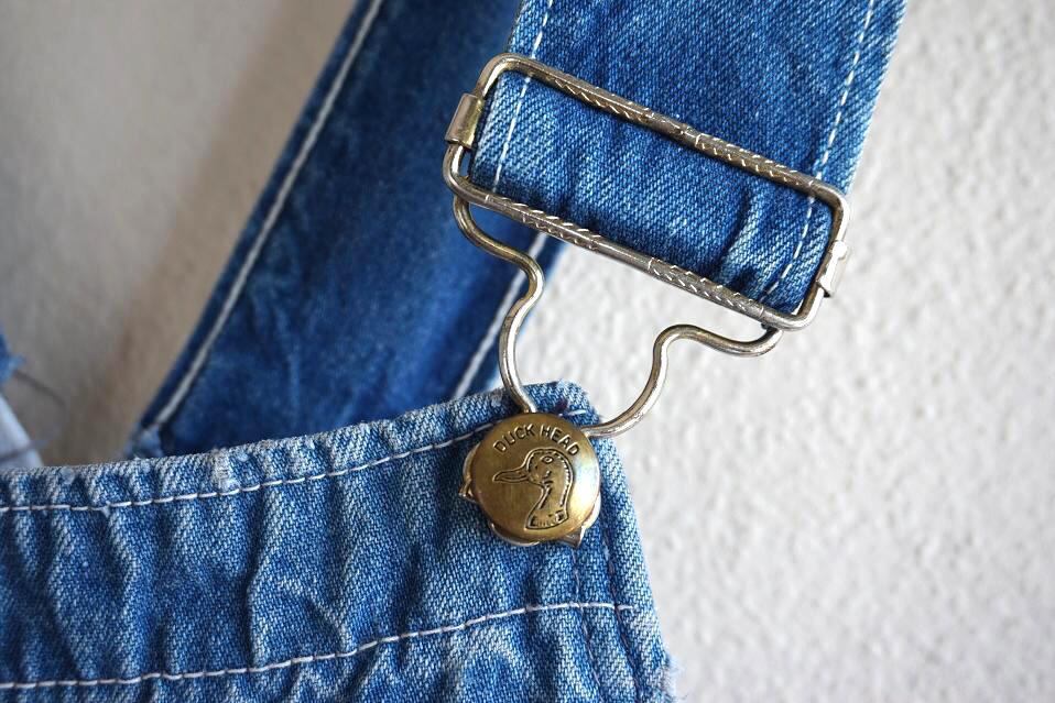 1970’s [DUCK HEAD] クロスラバーバンド&ローバック デニムオーバーオール 実寸(W35位) ビブオール
