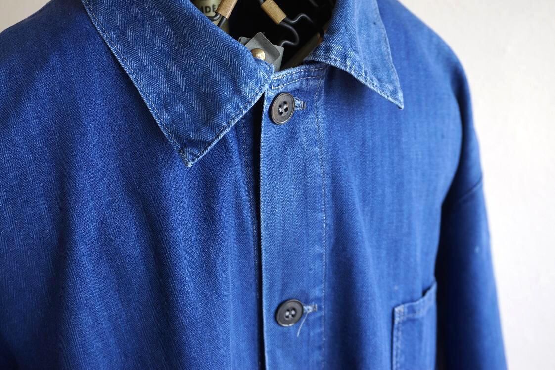 綺麗なアタリ・色落ちが出たヘリンボーンコットンのユーロワークカバーオール。