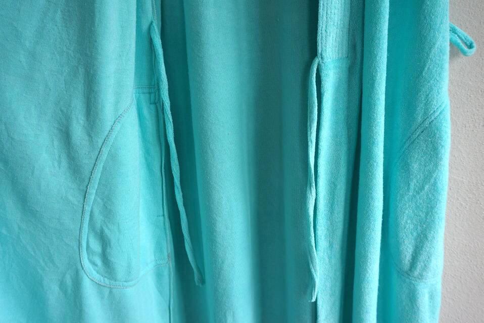エメラルドカラーが綺麗な、肌触りの良いパイルガウン。