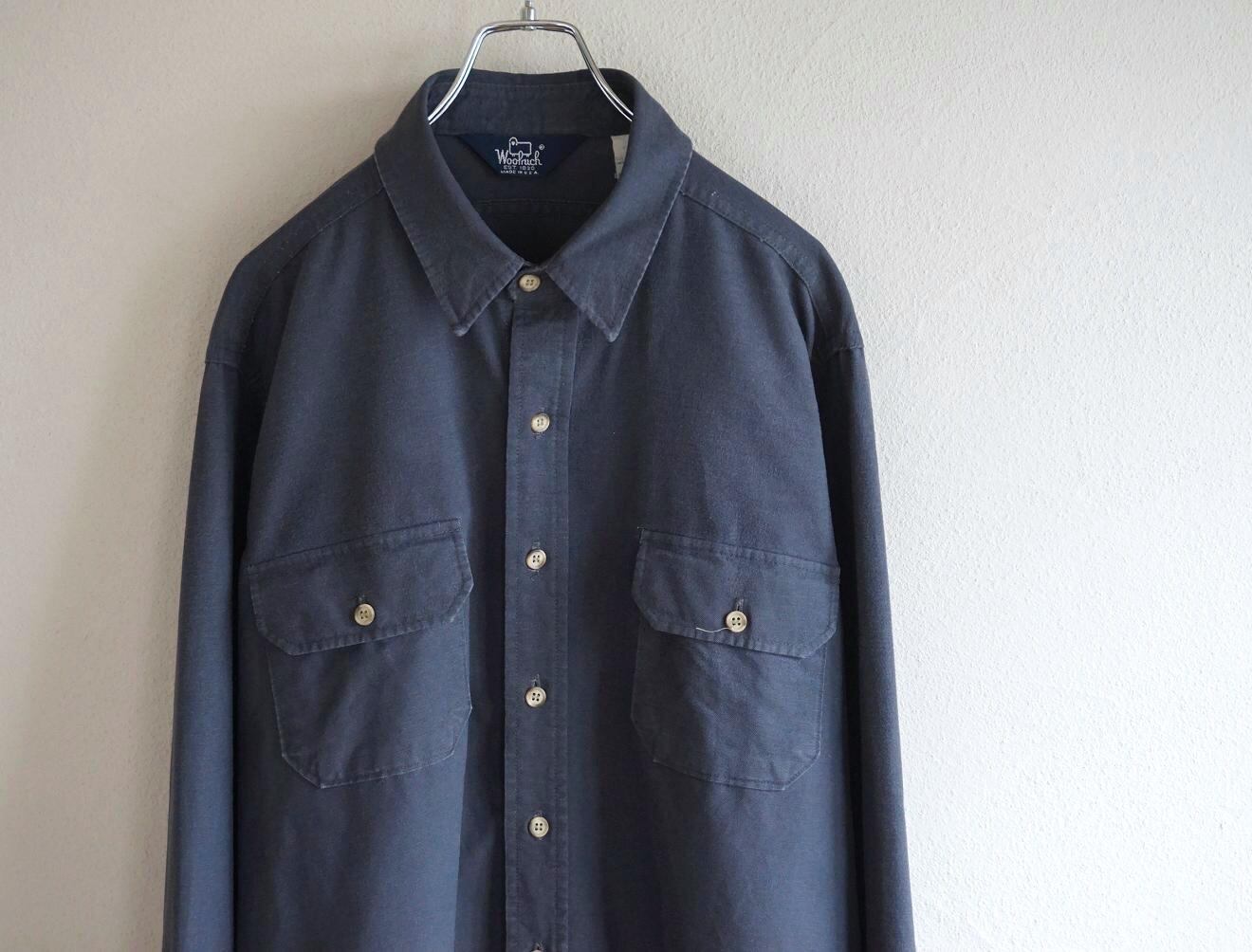 1980’s USA製 [Woolrich] フランネルシャツ チャコール 無地 表記(XL) ウールリッチ