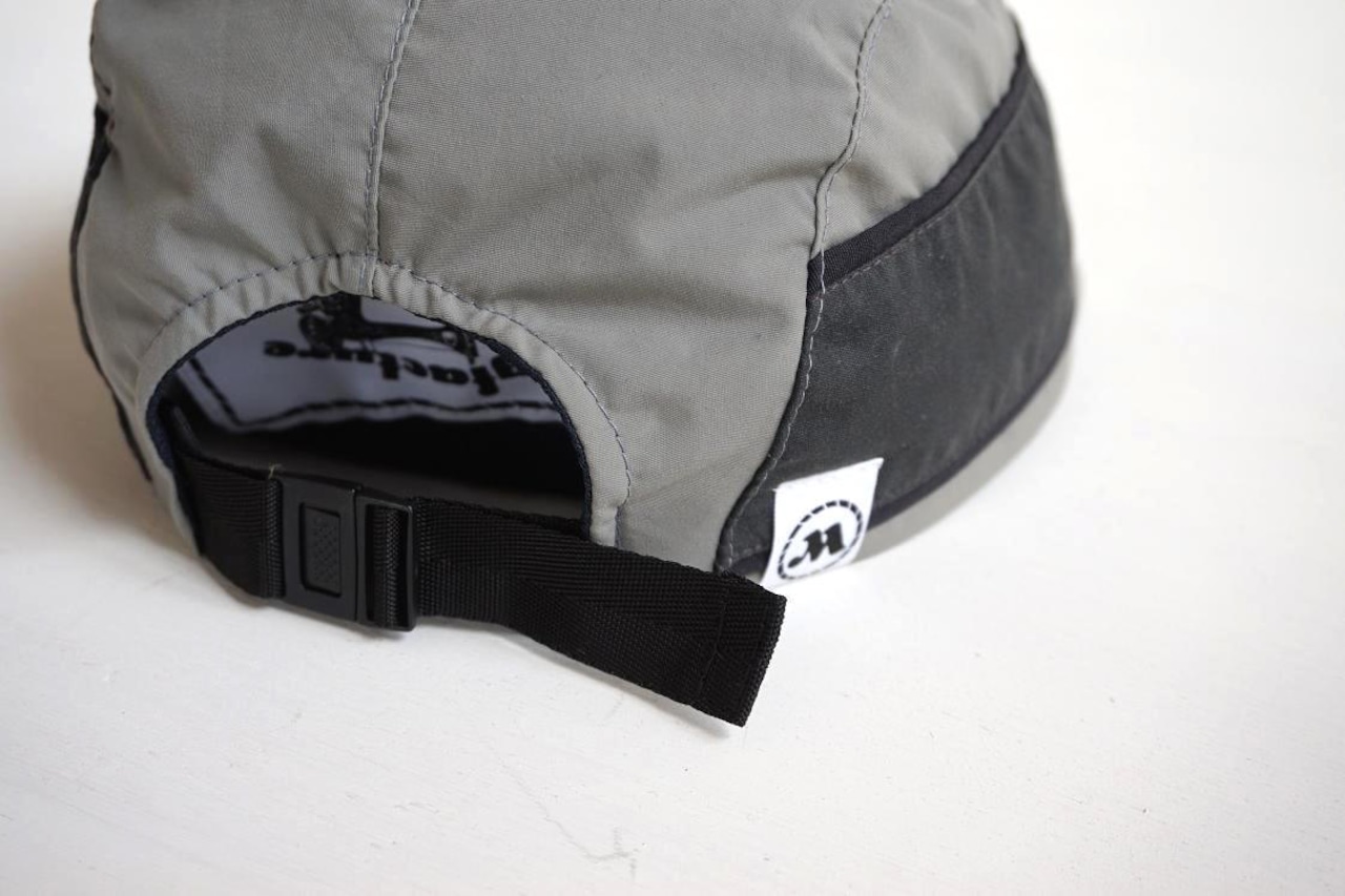 アメリカ軍のフィットネス/トレーニング用ウインドブレイカー"PFUジャケット"をメイクオーバーした、5パネルジェットキャップ。