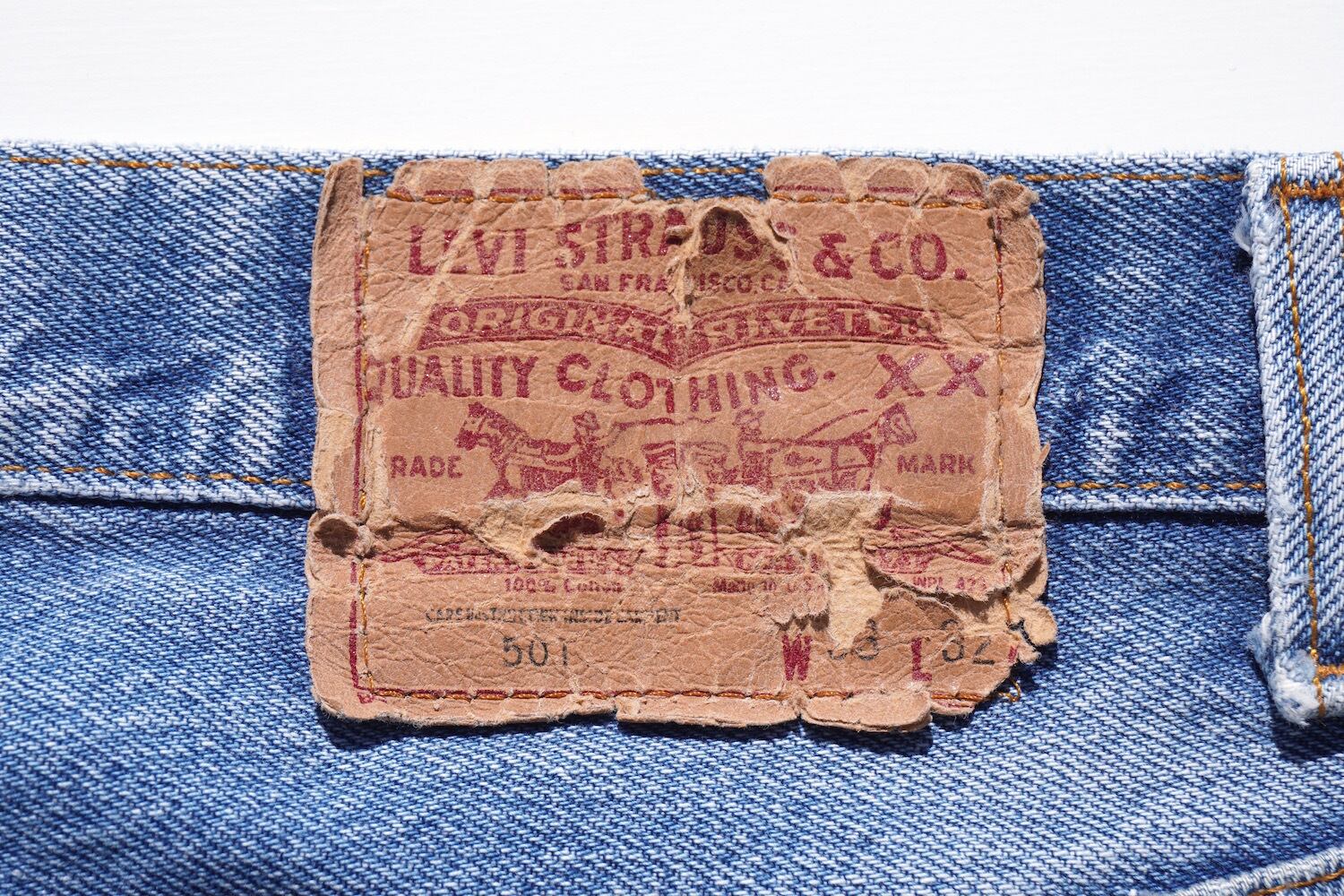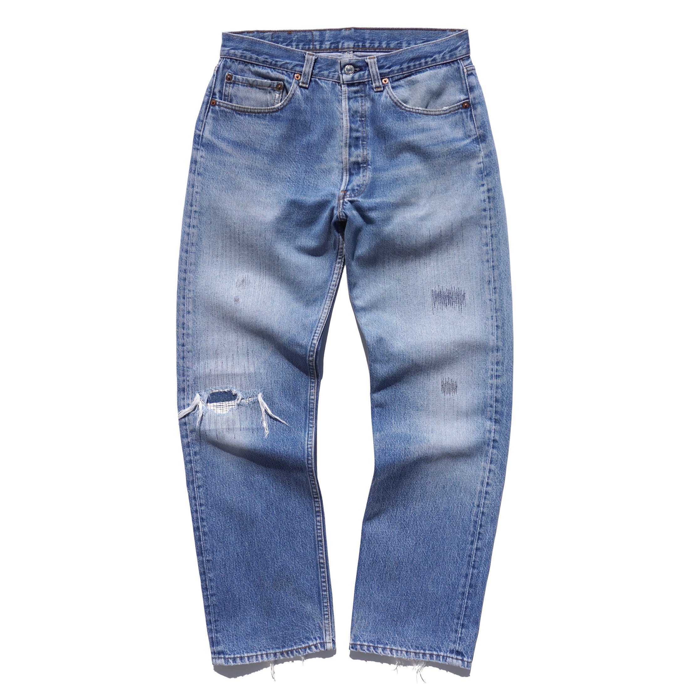 1980's USA製 [Levi's] "501" ストレートジーンズ ヒゲ落ち リペア 実寸(W31〜32程度) 脇割り リーバイス ヴィンテージ