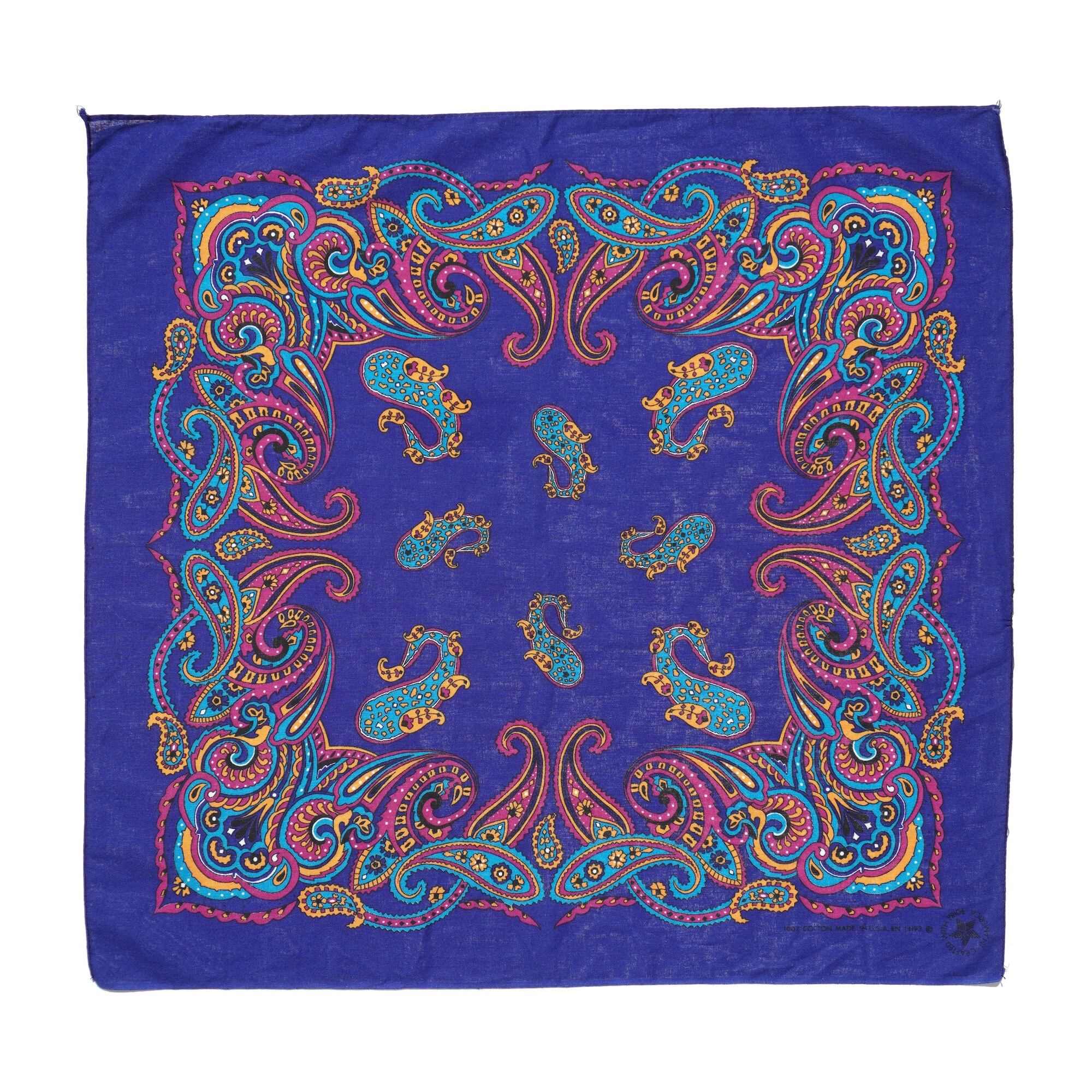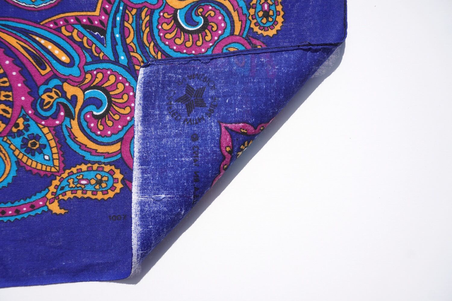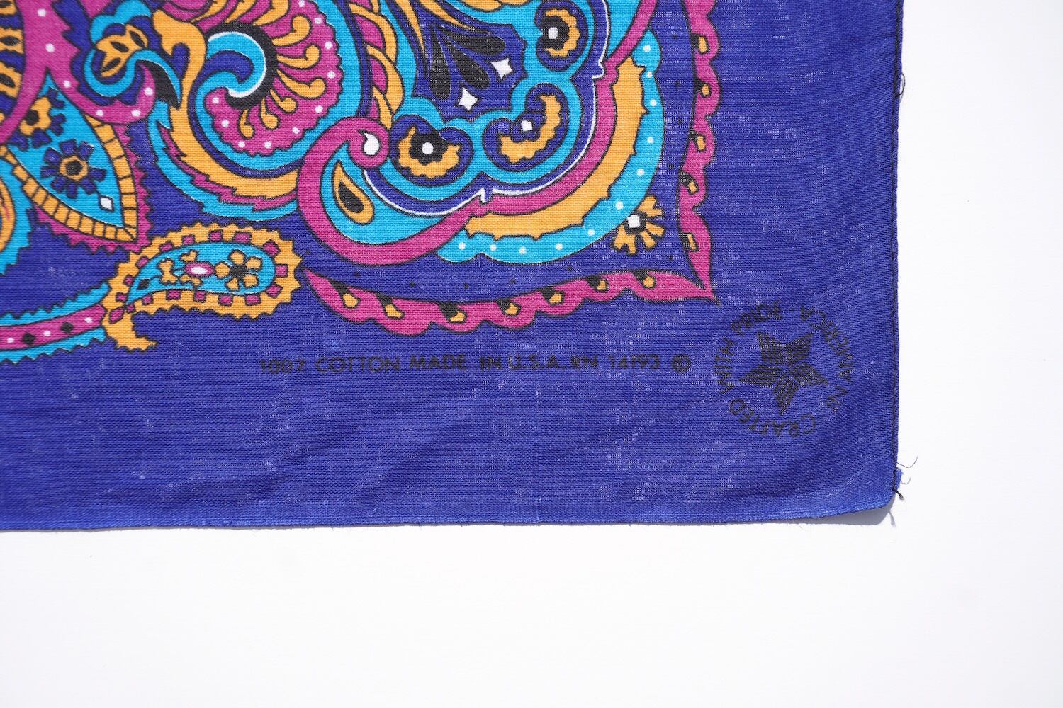 1980's〜90's USA製 [WAMCRAFT] カラフルペイズリー ヴィンテージバンダナ バイオレットブルー 実寸(52cm×55cm) RN14193 100%コットン