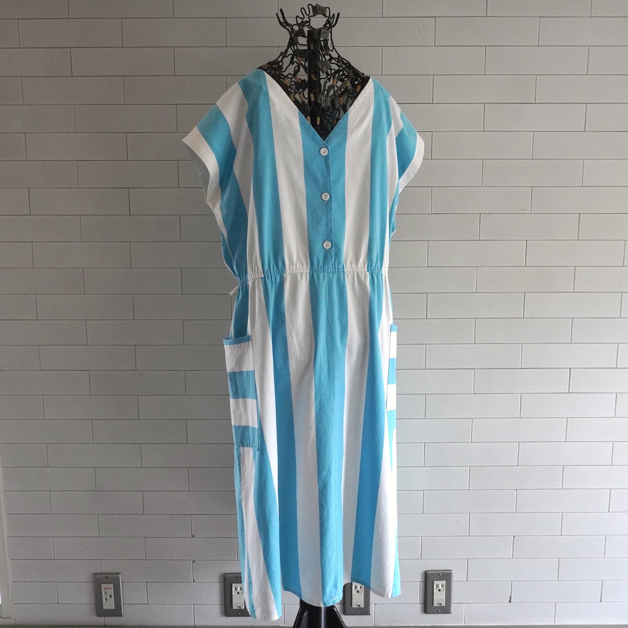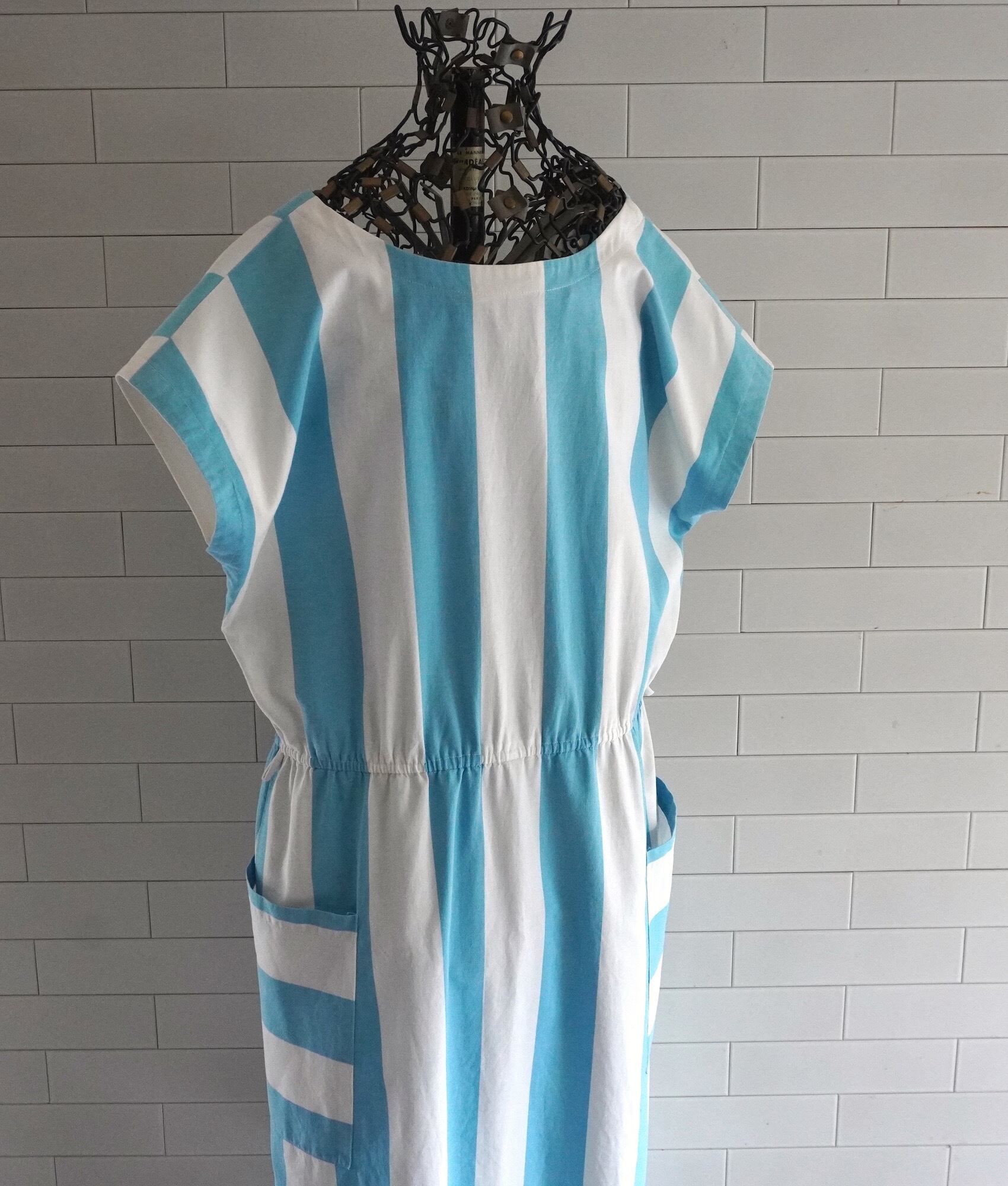 1990's [dress du jour] ワイドストライプ フレンチスリーブ サマーコットンドレス ホワイト×ライトブルー 実寸(women's L程度) ワンピース ヴィンテージ | MAGNOLIA WEBSTORE
