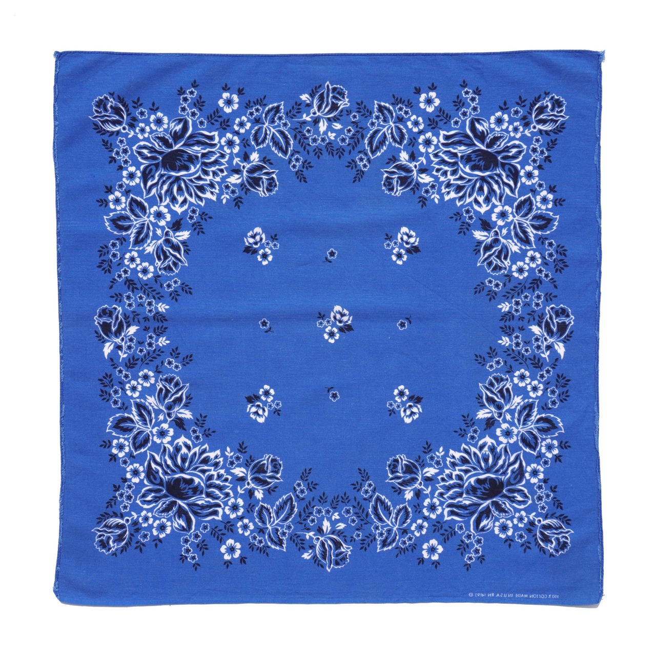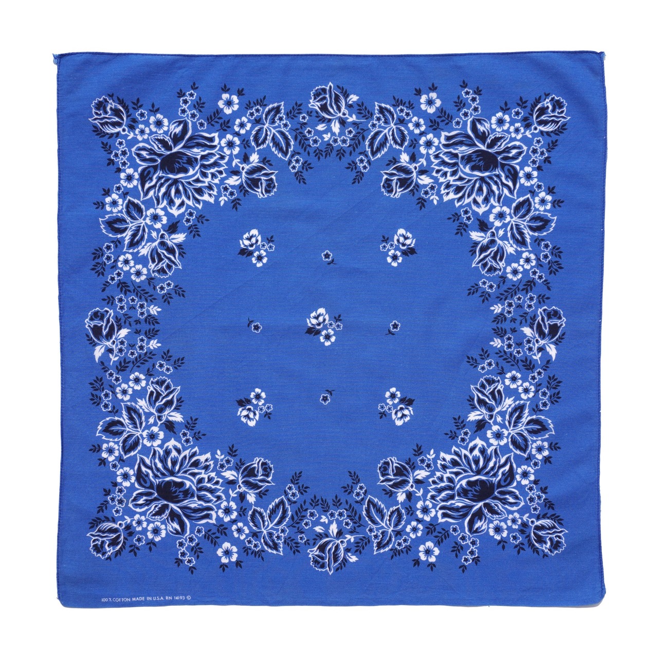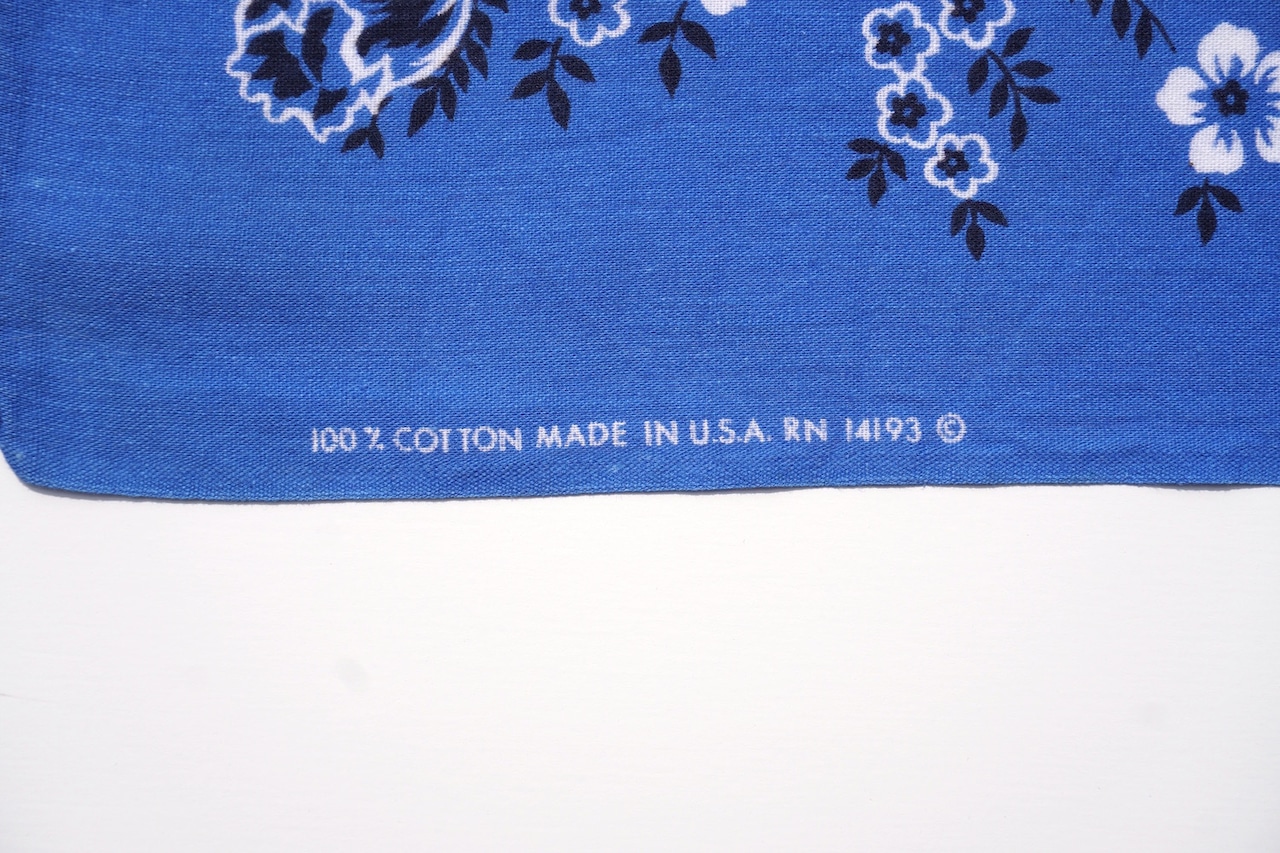 1970's USA製 [WAMCRAFT] ローズ柄 ヴィンテージバンダナ サファイアブルー 実寸(52cm×51cm) RN14193 100%COTTON バラ 薔薇 フラワー フローラル 花柄
