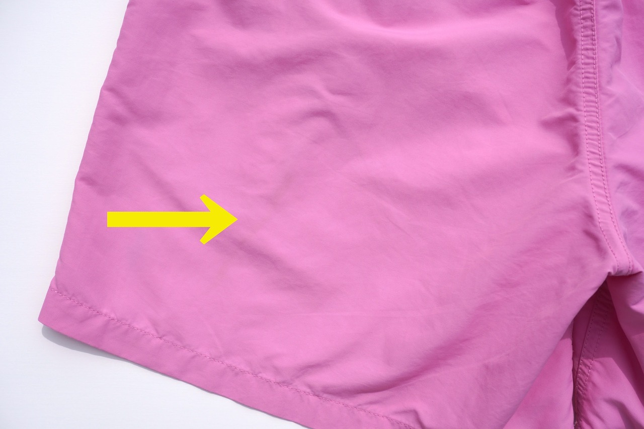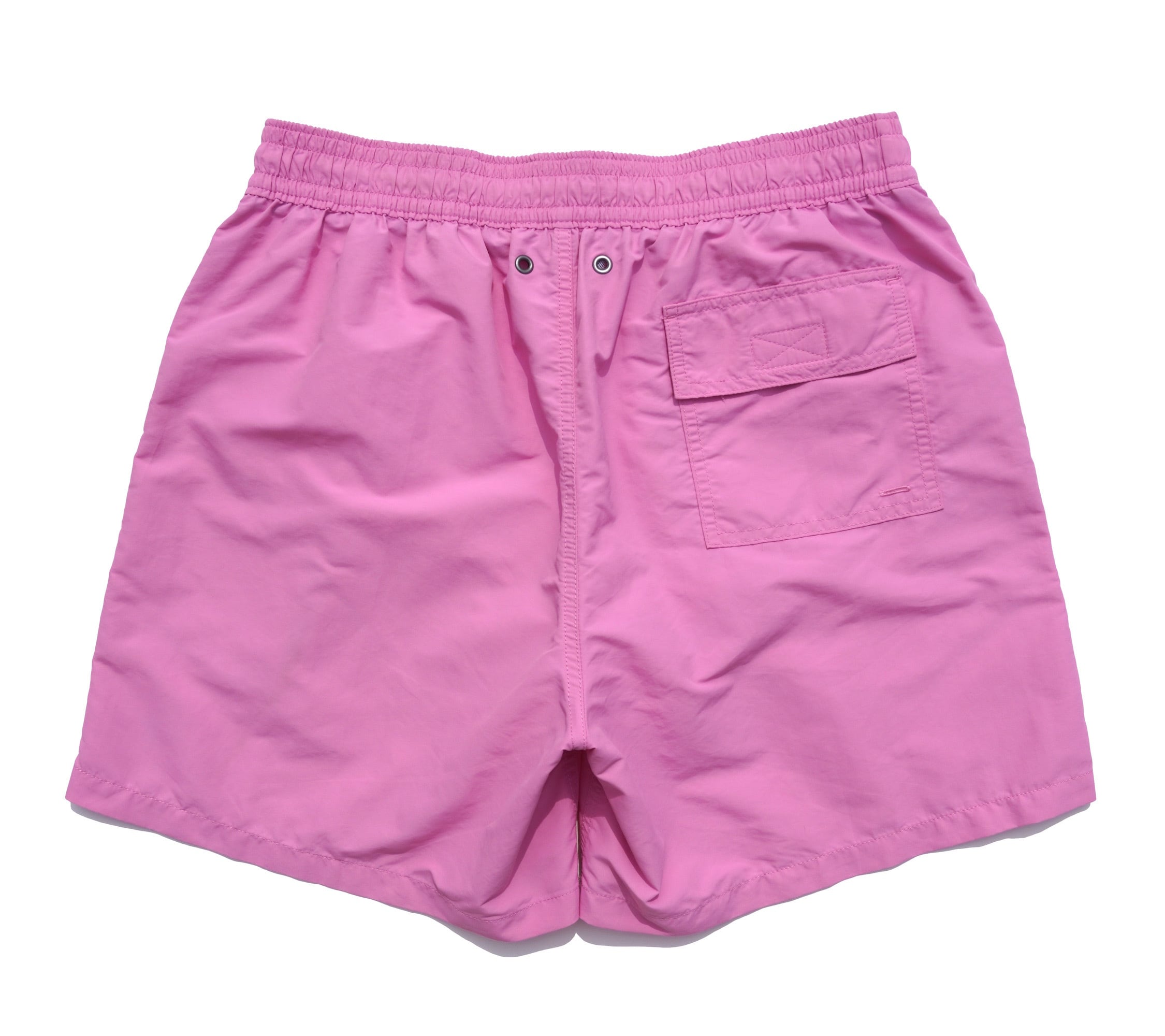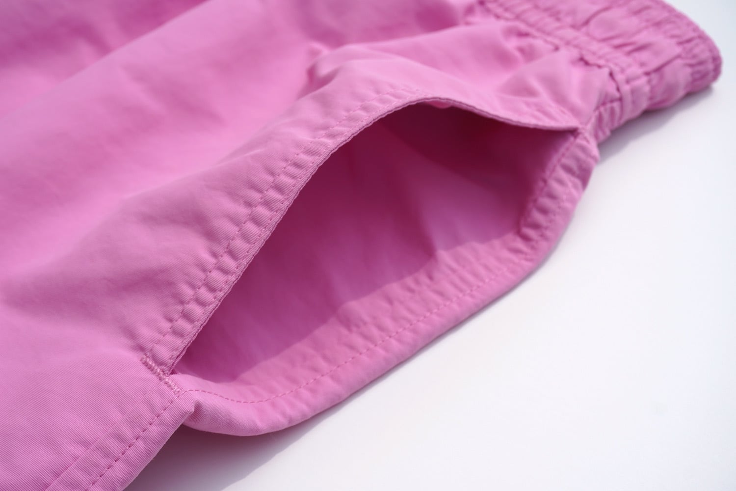ピンク×グリーンのカラーリングが目を惹く、ナイロンスイムショーツ。
