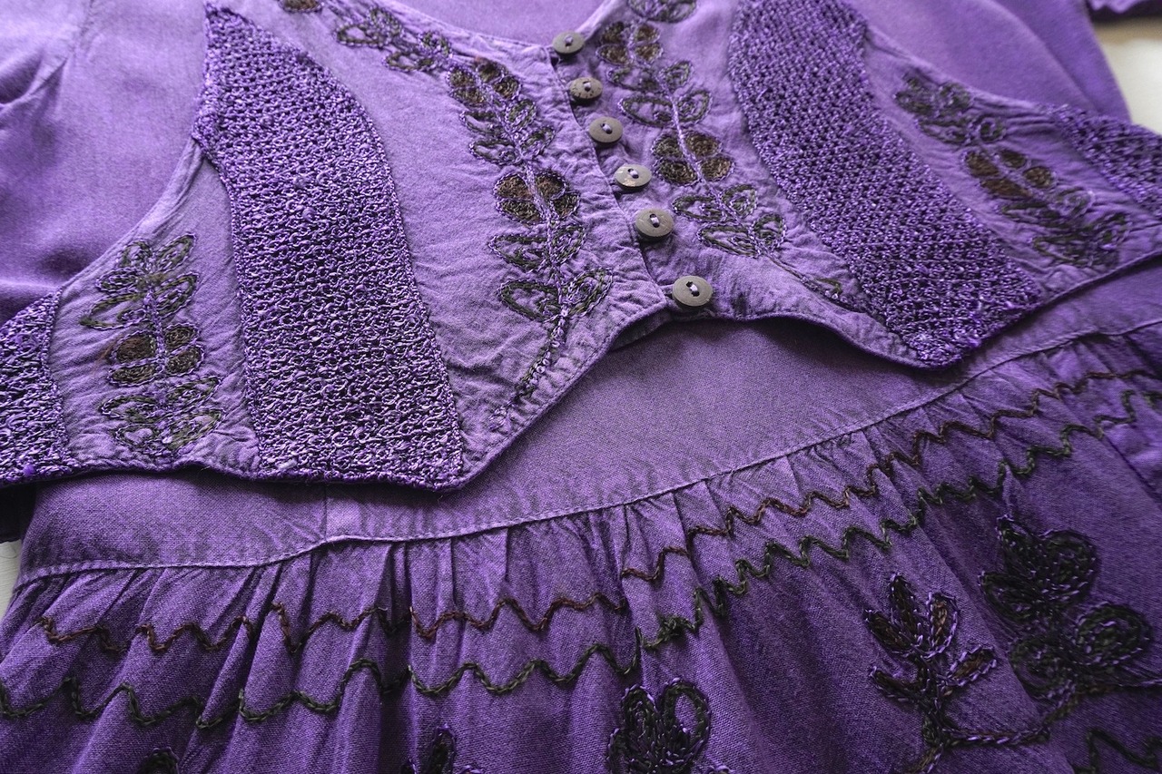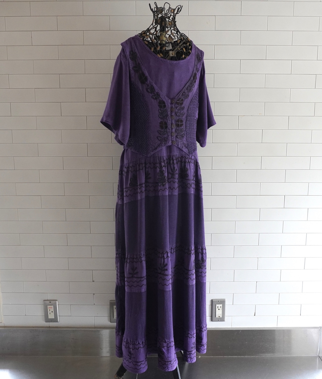 1990's ボヘミアン/ゴシック セットアップデザイン エンブロイダリー マキシレーヨンドレス パープル 表記(women's L) 刺繍 ワンピース ジプシー boho ヒッピー ヴィンテージ