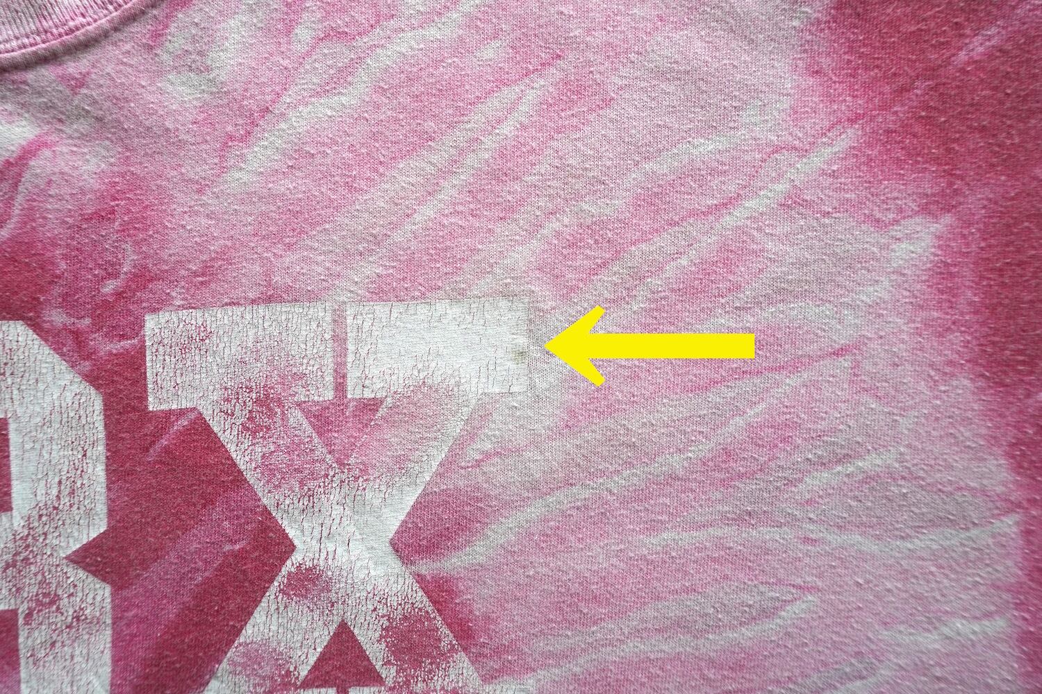 ボルテックスパターンのタイダイに、カレッジ風2段プリント。