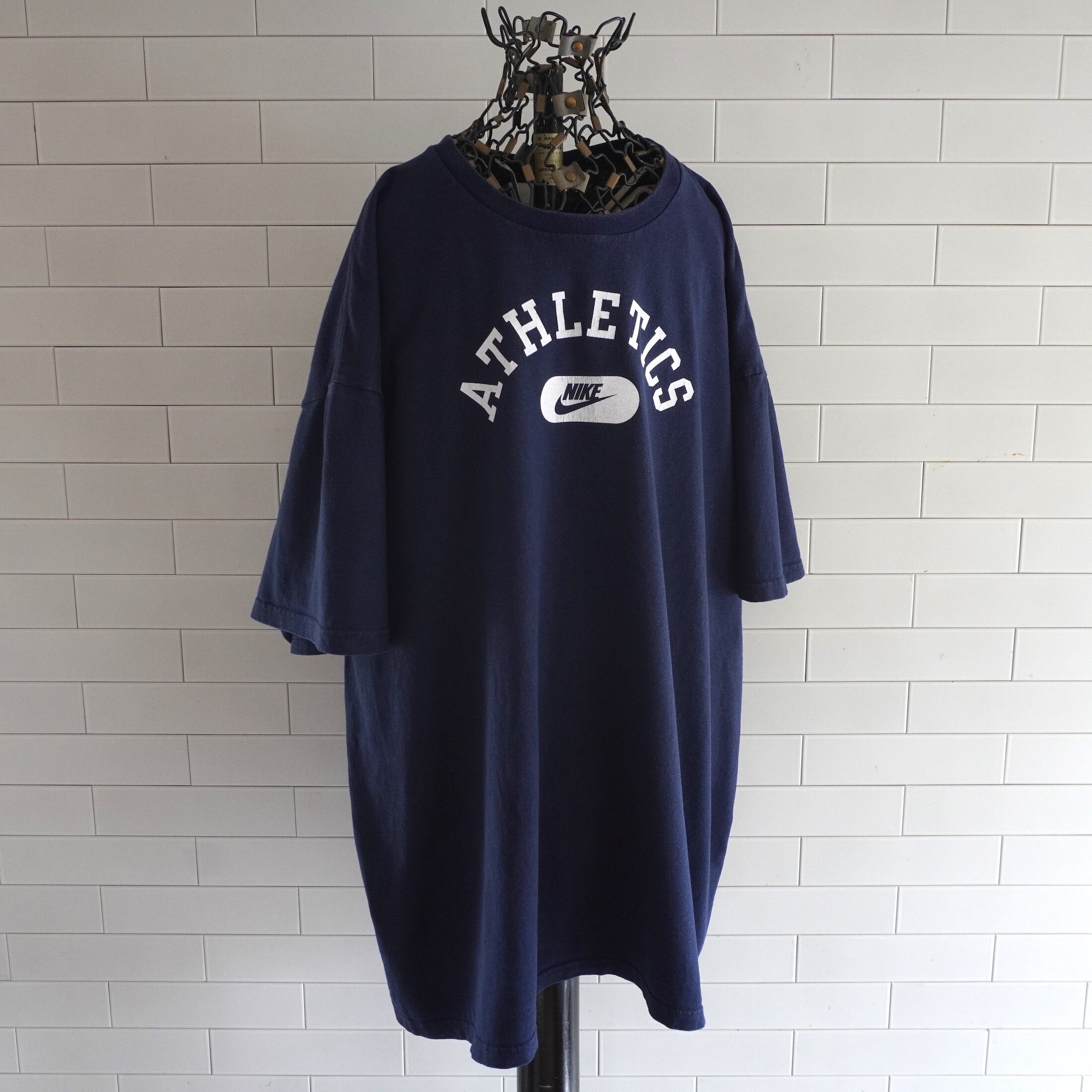2000's [NIKE] ATHLETICS カレッジプリント S/S Tシャツ ネイビー 表記(men's XXL) ナイキ Y2K ヴィンテージ