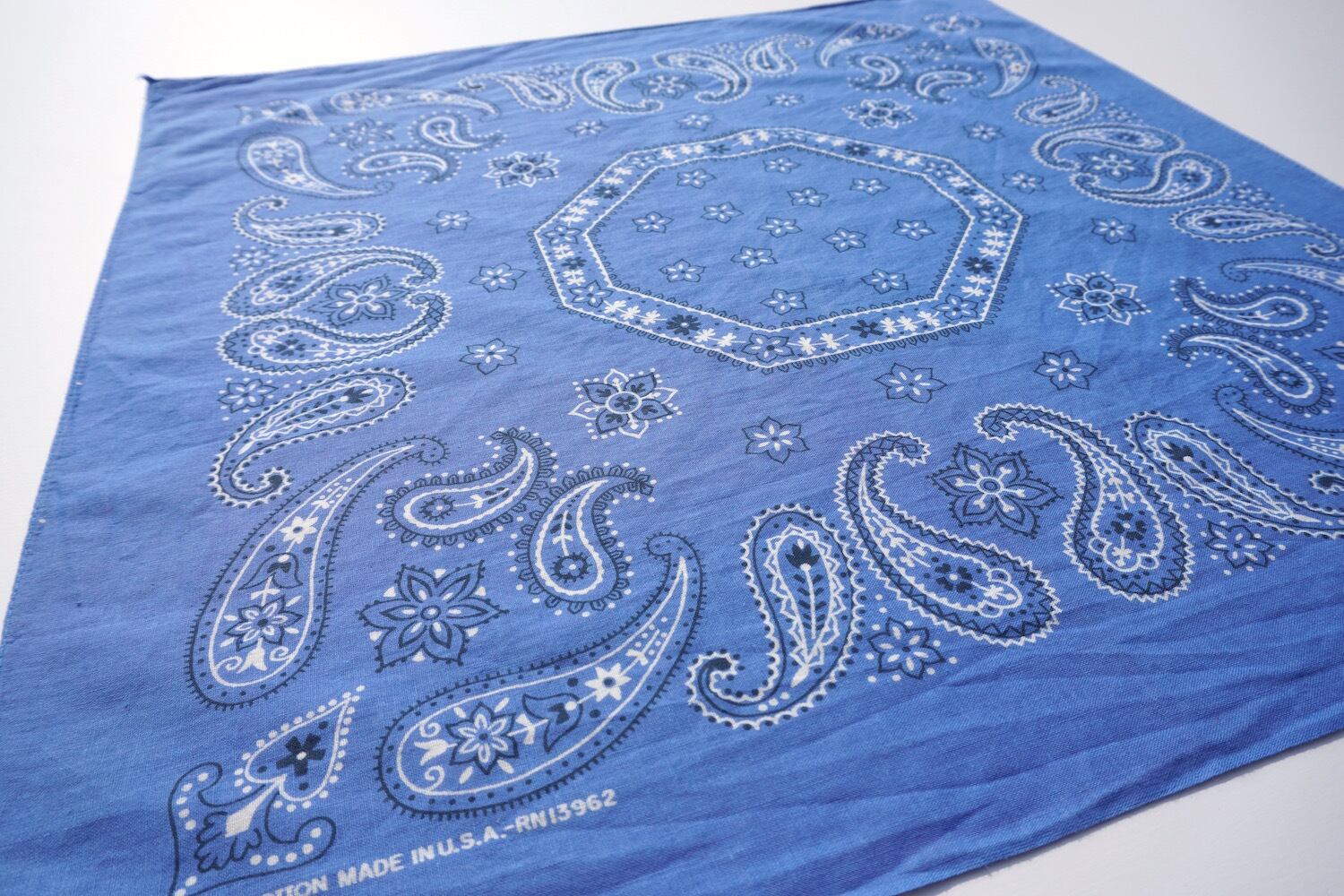 1980's USA製 [I.SHALOM & CO.] オクタゴン柄 ヴィンテージバンダナ サルビアブルー 実寸(52cm×52.5cm) RN13962 100%COTTON ペイズリー&フローラル | MAGNOLIA WEBSTORE