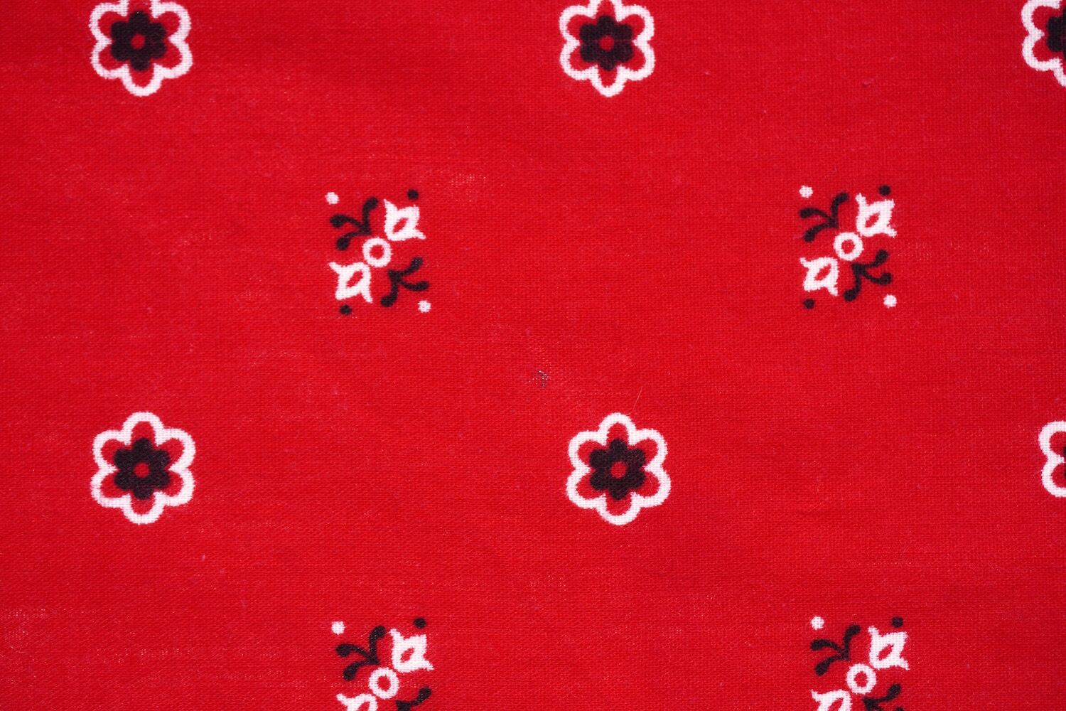 1970's USA製 [PARIS ACCESSORIES,INC.] クロス/ダマスク調フローラル柄 ヴィンテージバンダナ レッド 実寸(52.5cm×53cm) RN13960 100%COTTON FAST COLOR フラワー | MAGNOLIA WEBSTORE