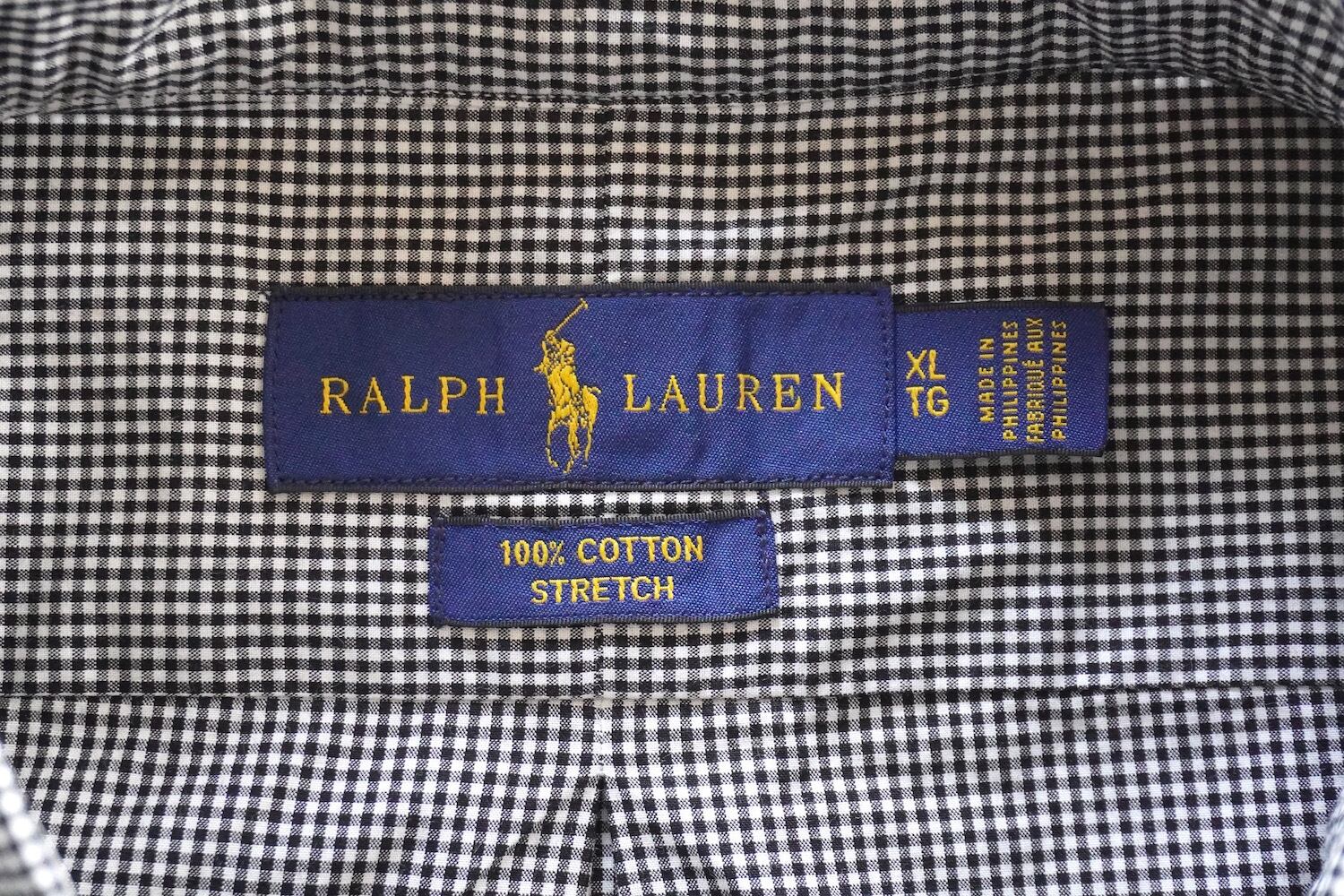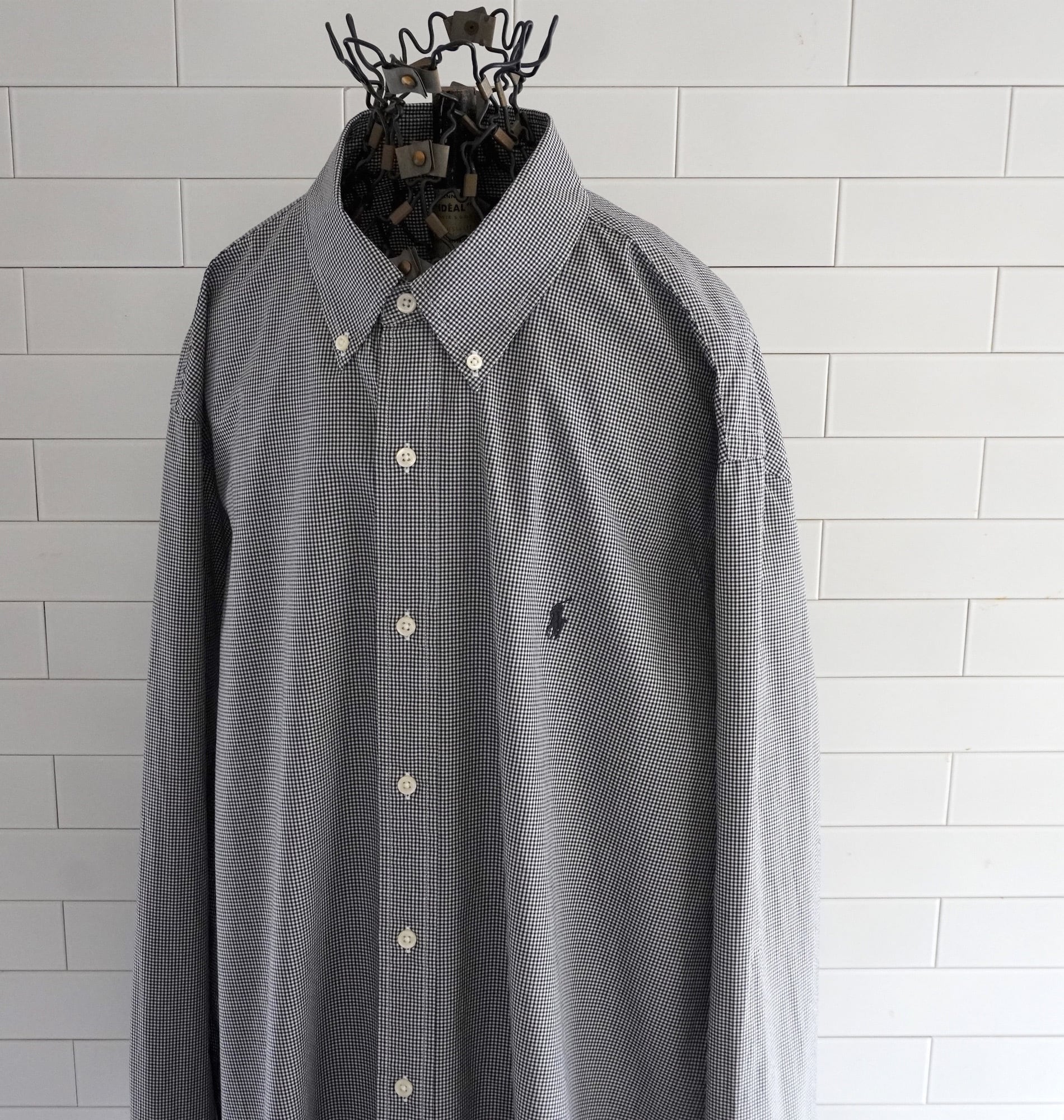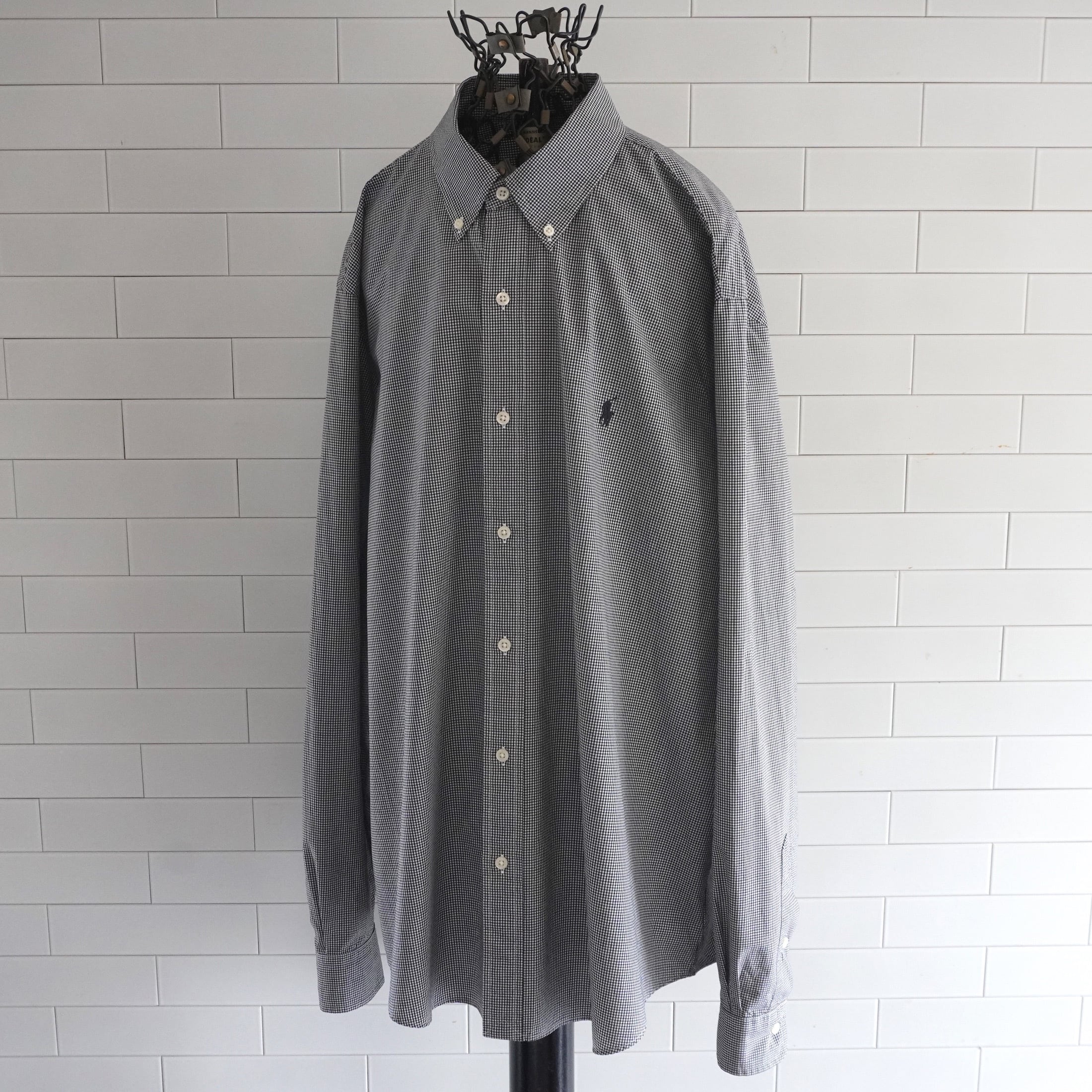 2010's〜 [RALPH LAUREN] ギンガムチェック ワンポイントポニー刺繍 L/S ボタンダウン ストレッチコットンシャツ ホワイト×ブラック 表記(men's XL) モノトーン ラルフローレン | MAGNOLIA WEBSTORE