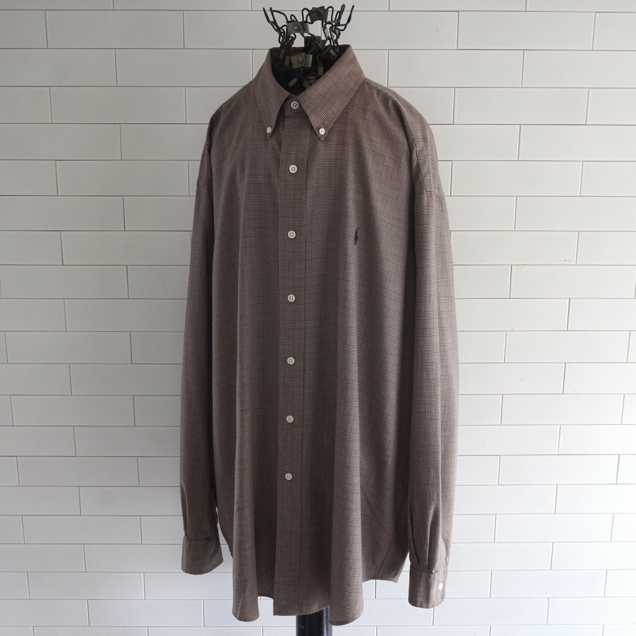 1990's [Ralph Lauren] "BLAKE" ワンポイントポニー刺繍 グレンチェック L/S ボタンダウン コットンシャツ モカブラウン×ブラック 表記(men's L) トラッド ラルフローレン オールド ヴィンテージ