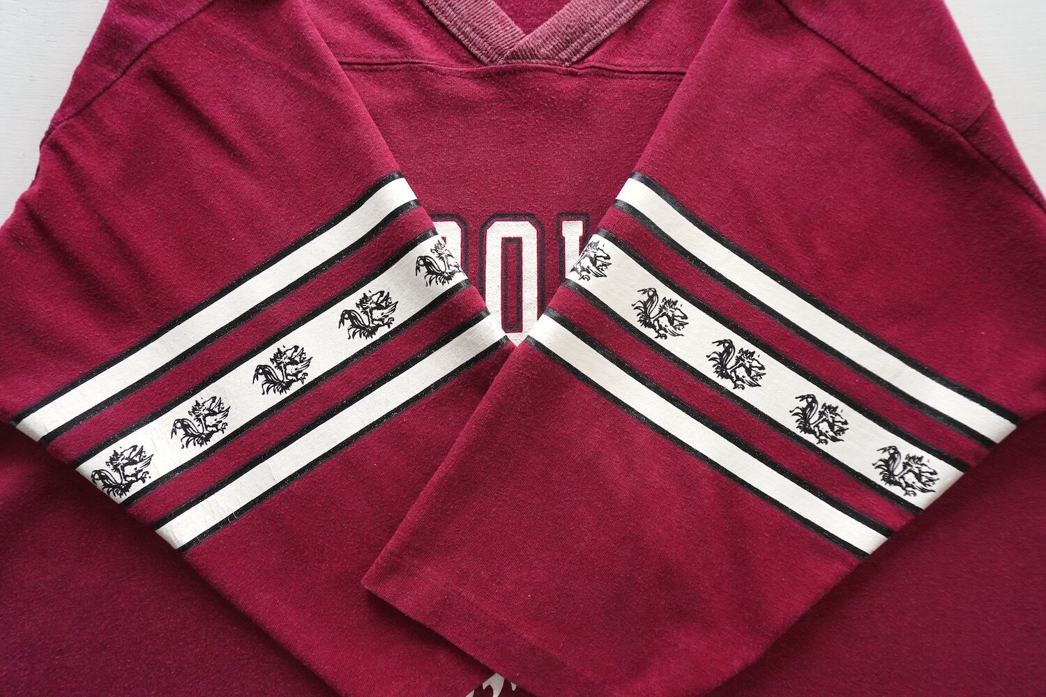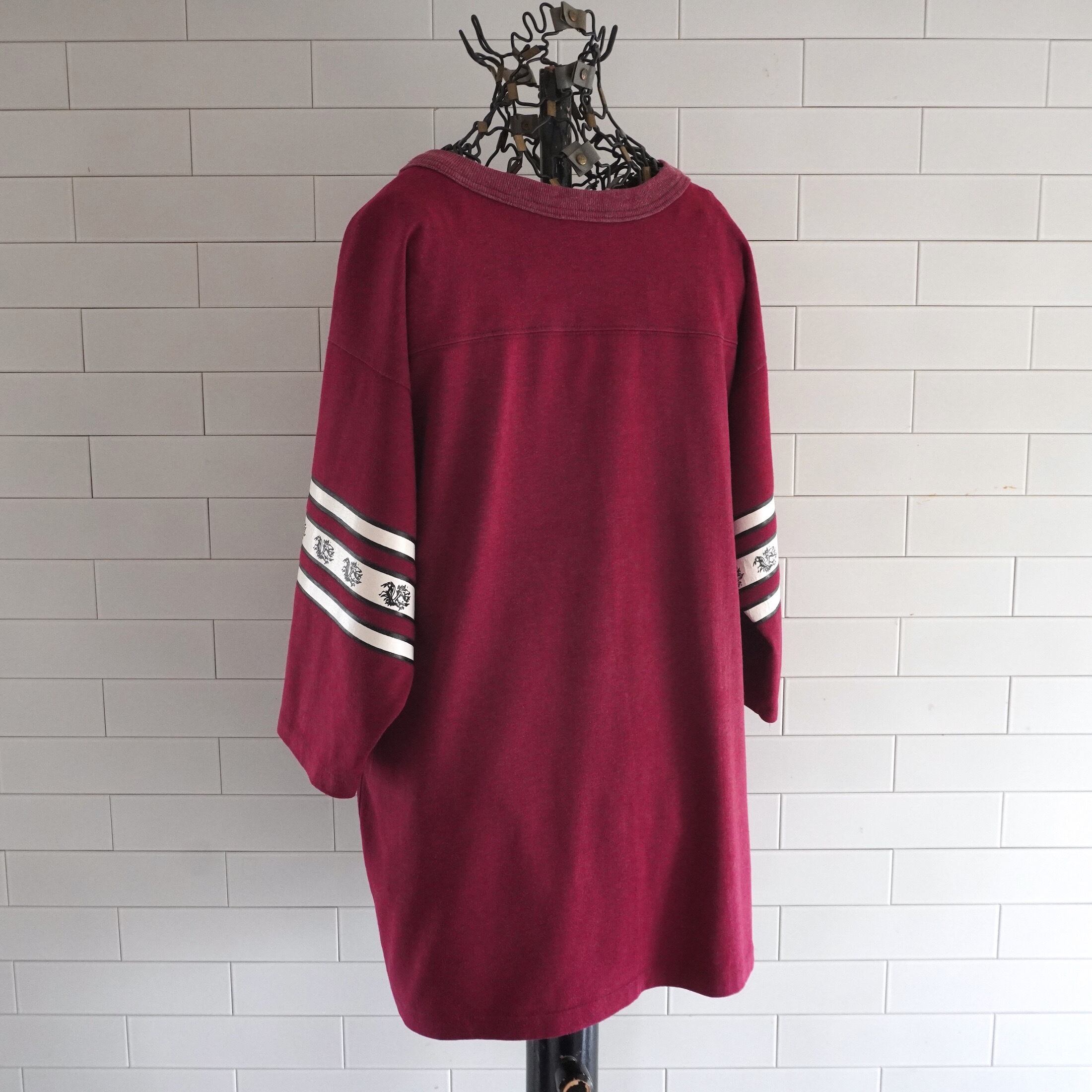 1970's サウスカロライナ大学 "GAMECOCKS" カレッジプリント フットボールTシャツ ガーネット 実寸(men's M程度) ゲームコックス ヴィンテージ