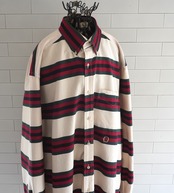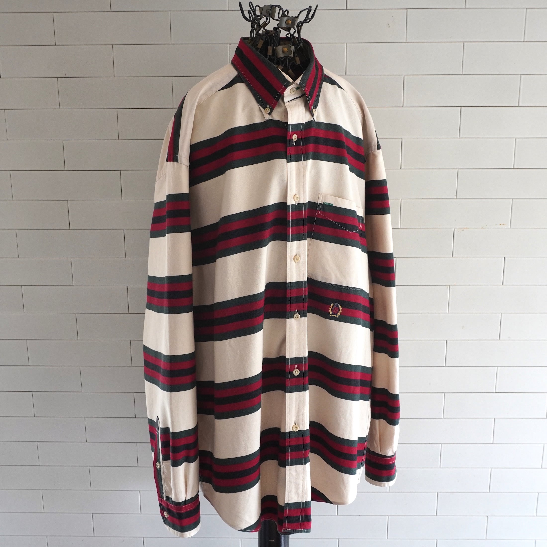 1990's [TOMMY HILFIGER] ボーダー柄 L/S ボタンダウン コットンツイルシャツ アイボリー×グリーン/レッド/ブラック 表記(men's L) オールド トミーヒルフィガー ヴィンテージ | MAGNOLIA WEBSTORE