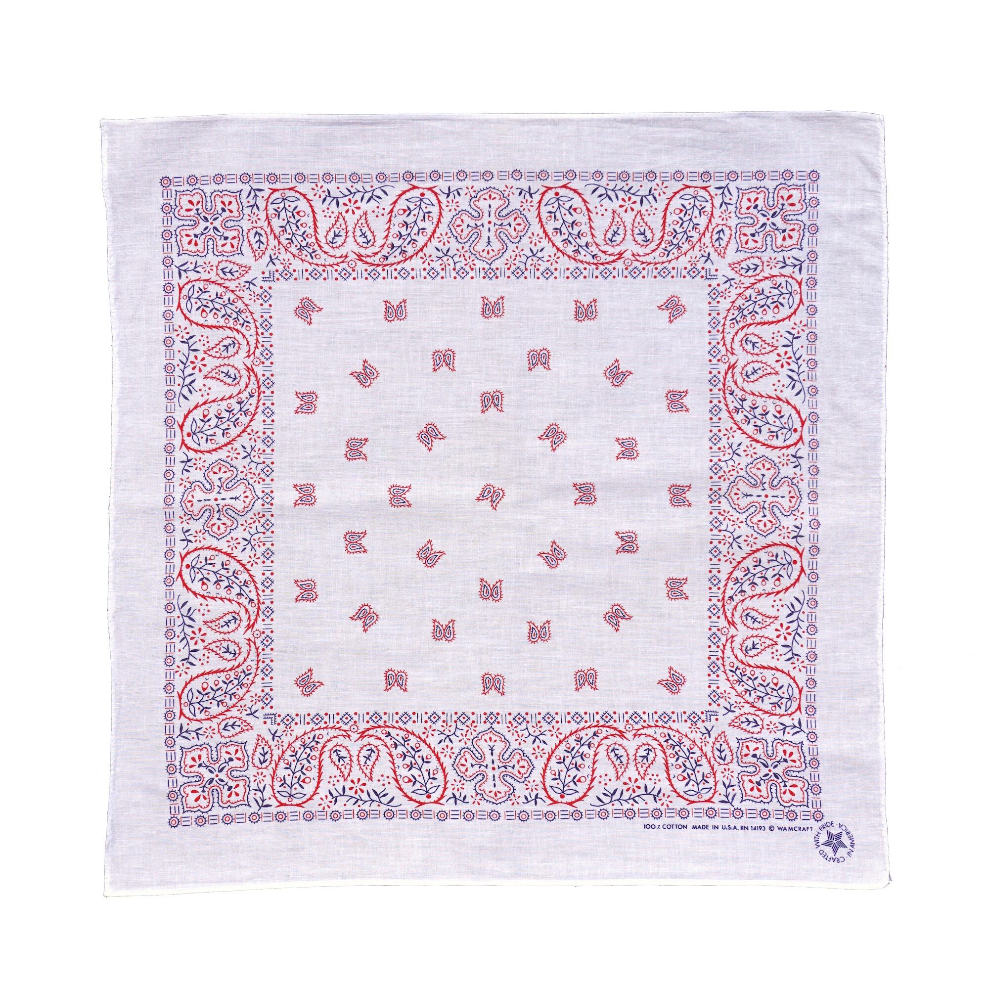1980's USA製 [WAMCRAFT] トリコロール ペイズリー柄 ヴィンテージバンダナ ホワイト 実寸(52cm×52.5cm) RN14193 100%COTTON